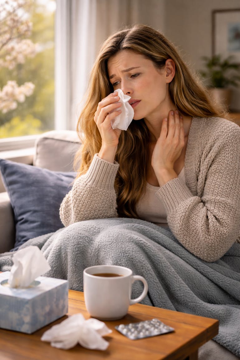 Instead of obvious allergy symptoms, they experience a blocked nose, sore throat, fatigue, or sinus pressure. These symptoms feel less like seasonal allergies and more like the start of a cold.