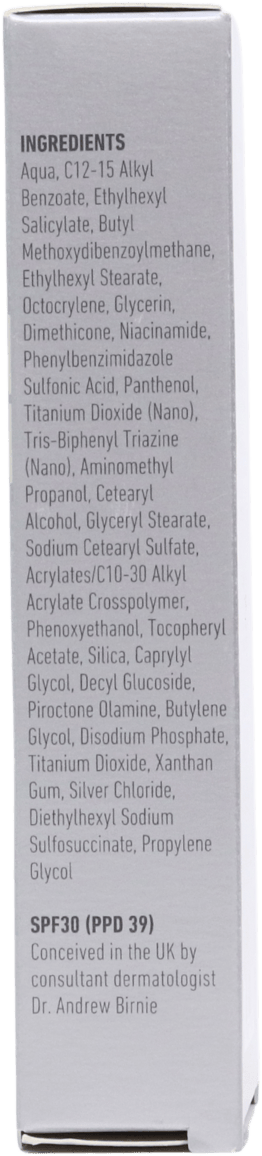 Key ingredients include Vitamin E, niacinamide, panthenol, and titanium dioxide. These components work together to protect, soothe, and brighten the skin.