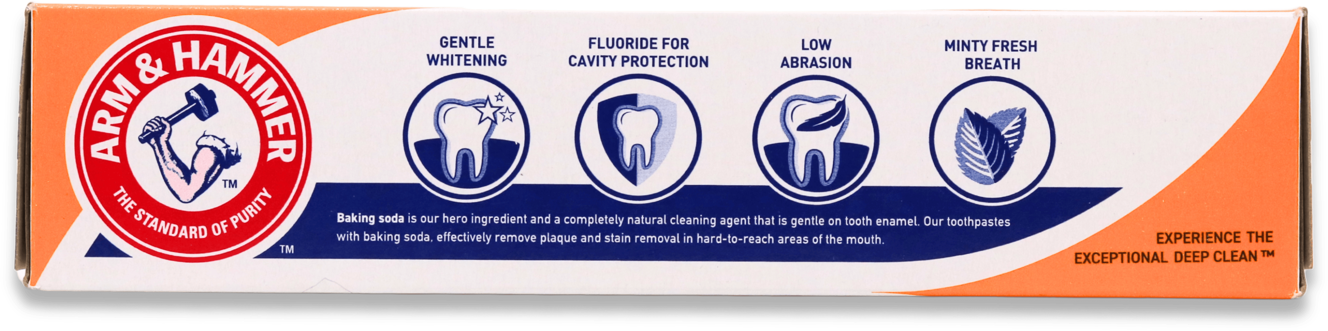 - Gentle whitening: Baking soda gently lifts and removes surface stains for naturally whiter teeth.