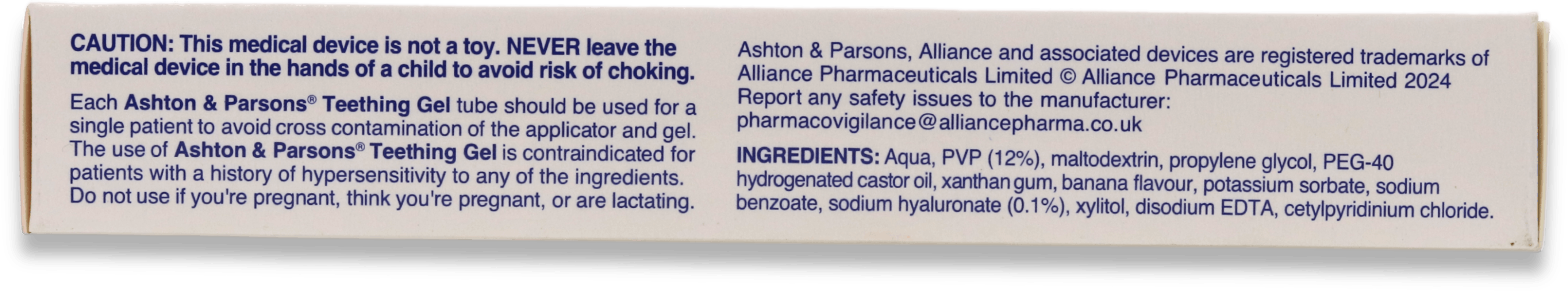 Ashton & Parsons Teething Gel is safe for most babies over 3 months. Parents should check with a doctor if their baby has allergies. Always read the label before applying.