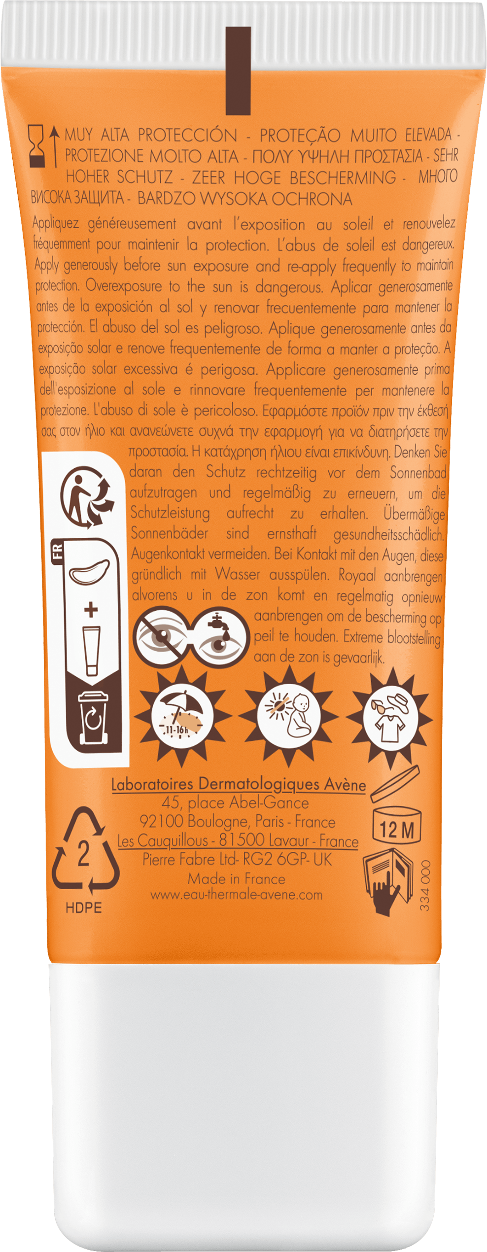 Avene Thermal Spring Water (Avene Aqua). C12-15 Alkyl Benzoate. Dicaprylyl Carbonate. Methylene Bis-Benzotriazolyl Tetramethylbutylphenol [Nano]. Water (Aqua). Silica. Bis-Ethylhexyloxyphenol Methoxyphenyl Triazine. Diethylhexyl Butamido Triazone. Aluminum Starch Octenylsuccinate. Diisopropyl Adipate. Butyl Methoxydibenzoylmethane. Titanium Dioxide (Ci 77891). Decyl Glucoside. Glyceryl Stearate. Potassium Cetyl Phosphate. Vp/Eicosene Copolymer. Acrylates/Ammonium Methacrylate Copolymer. Acrylates/C10-30 Alkyl Acrylate Crosspolymer. Alumina. Benzoic Acid. Butylene Glycol. Caprylic/Capric Triglyceride. Caprylyl Glycol. Disodium Edta. Fragrance (Parfum). Glyceryl Behenate. Glyceryl Dibehenate. Iron Oxides (Ci 77492) (Ci 77491) (Ci 77499). Isopropyl Myristate. Oxothiazolidine. Propylene Glycol. Sodium Benzoate. Sodium Hydroxide. Stearyl Alcohol. Tocopherol. Tocopheryl Glucoside. Tribehenin. Triethyl Citrate. Xanthan Gum.