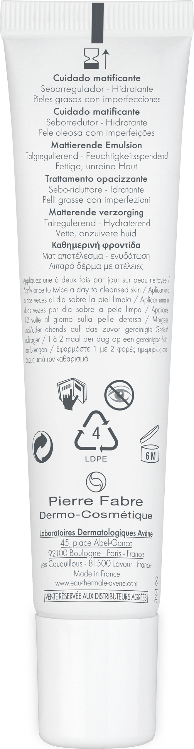Apply Avène Cleanance Mattifying Emulsion once or twice a day to previously cleansed skin.
