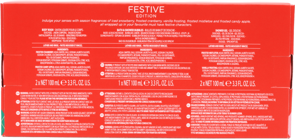 - Five Festive Scents: Indulge in five 100ml body washes, each infused with a seasonal fragrance.