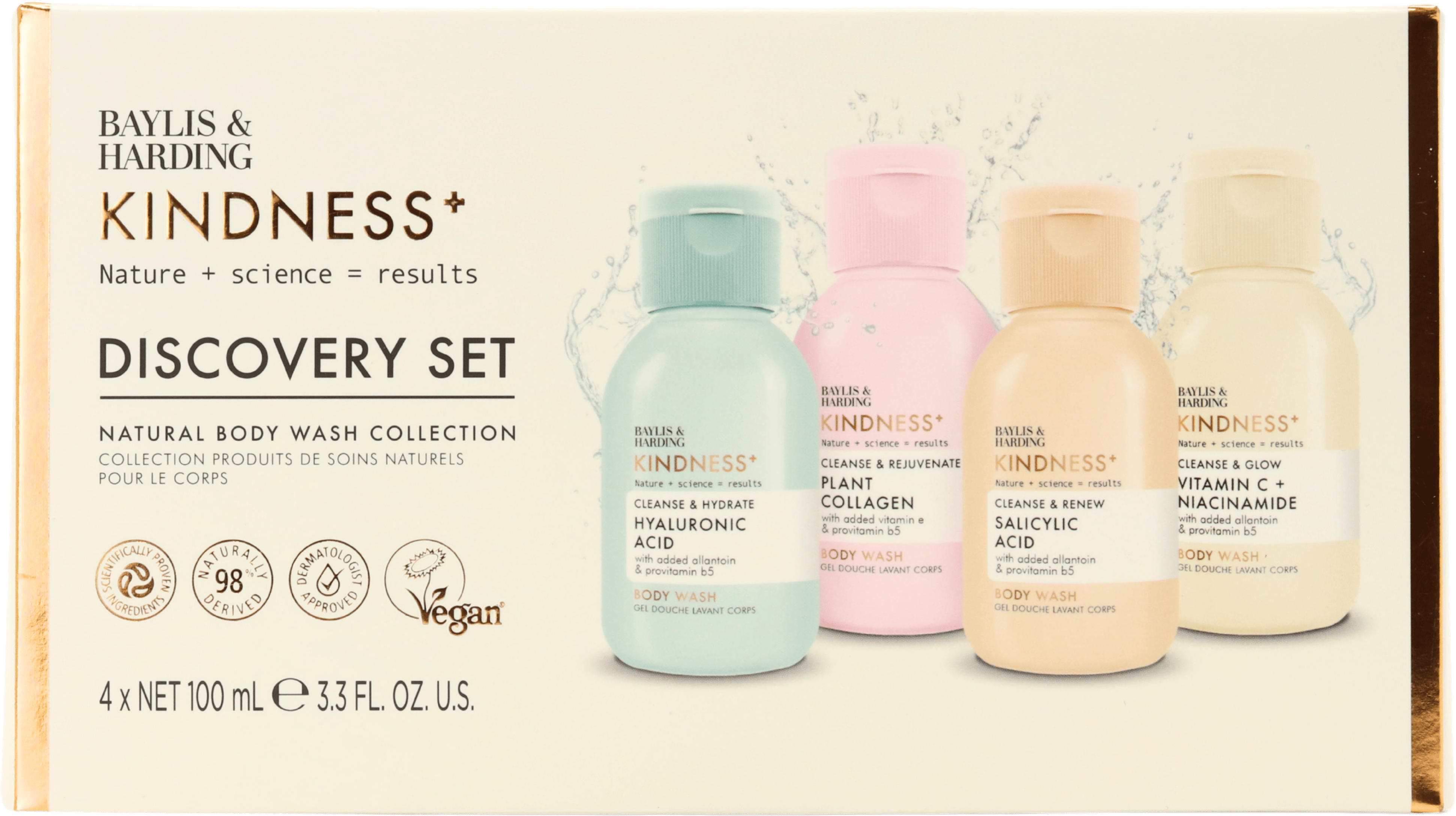- Great for gifting and trialling: Compact 100 ml sizes make the set ideal for trying the full Kindness+ range, taking on weekends away or giving as a thoughtful present to anyone exploring more natural, science-backed body care.