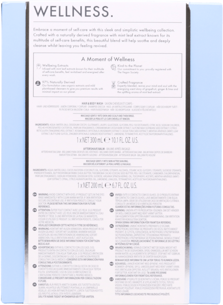 The set comprises a 300ml hair and body wash and a 200ml aftershave balm, both crafted to cleanse, hydrate, and soothe the skin. This combination aids in maintaining skin balance and comfort post-shower or shave.