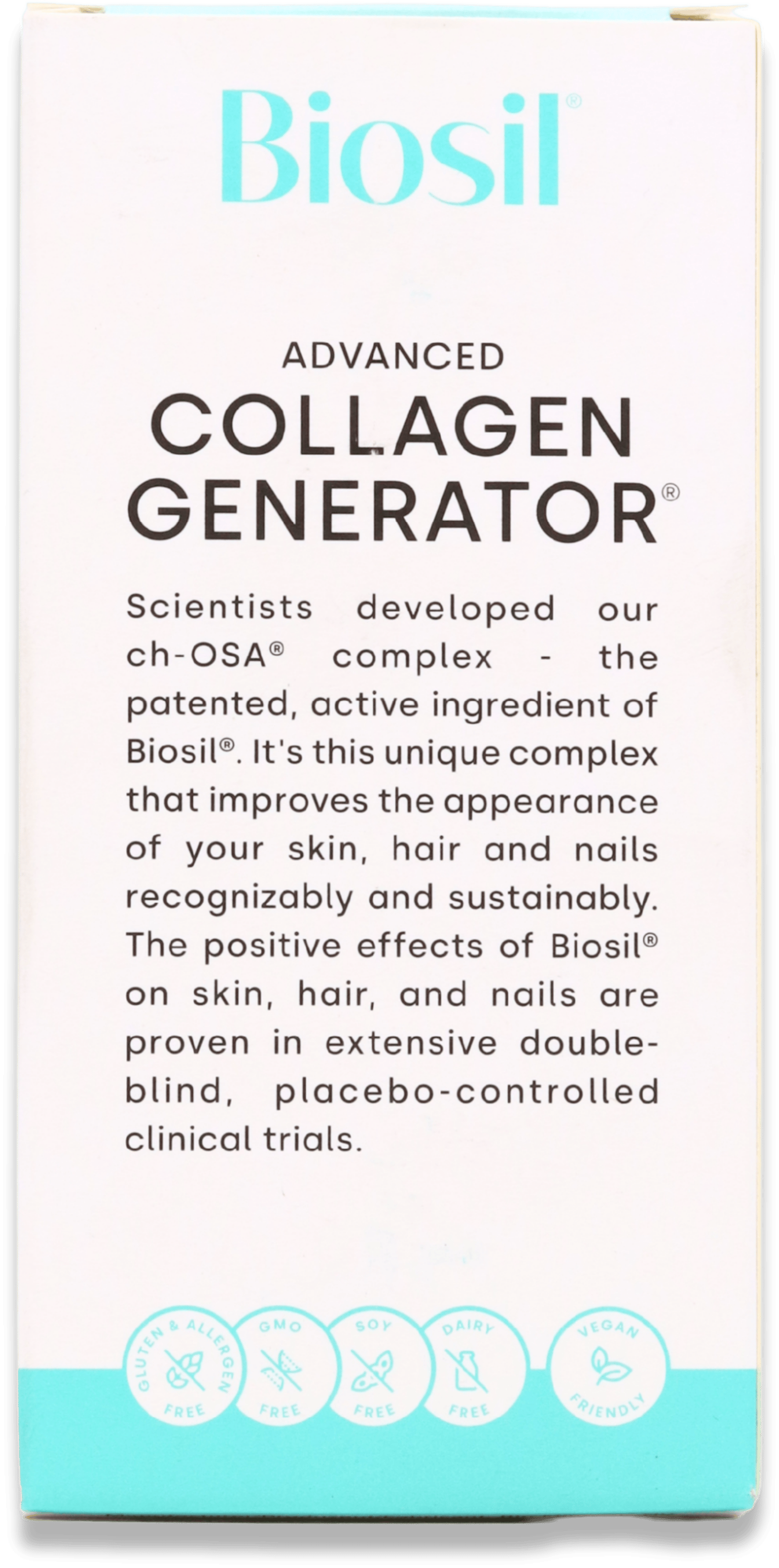 Biosil Advanced Collagen Generator operates by providing your body with ch-OSA®, which triggers your natural collagen, keratin, and elastin synthesis. This distinctive process aids your body in renewing and safeguarding these vital structural proteins from the inside out.