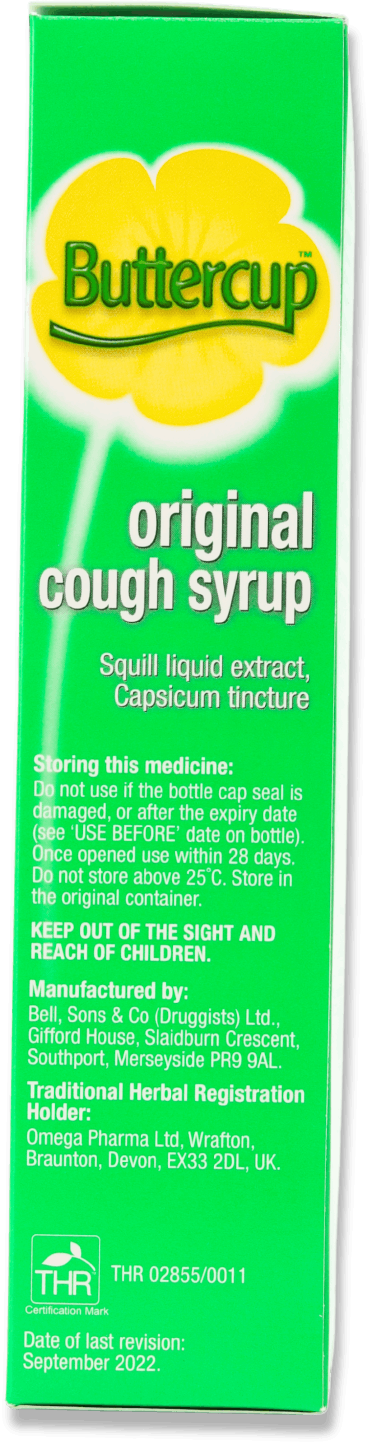 Buttercup Original Cough Syrup 150ml is a traditional herbal cough remedy used to relieve coughs linked with colds. It contains squill liquid extract, an expectorant that helps loosen mucus, and capsicum tincture, which gives a warming sensation in the throat. The syrup coats the throat to reduce irritation and calm the cough reflex.