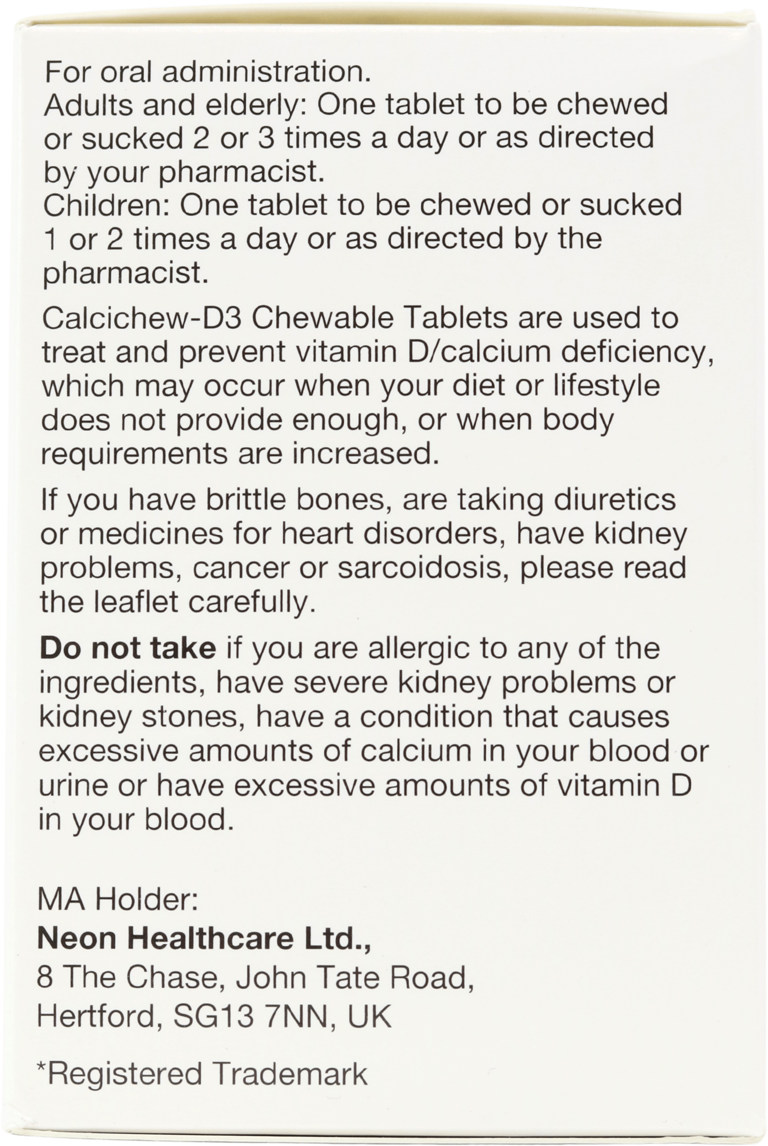 Talk to your doctor or pharmacist before taking Calcichew-D3: