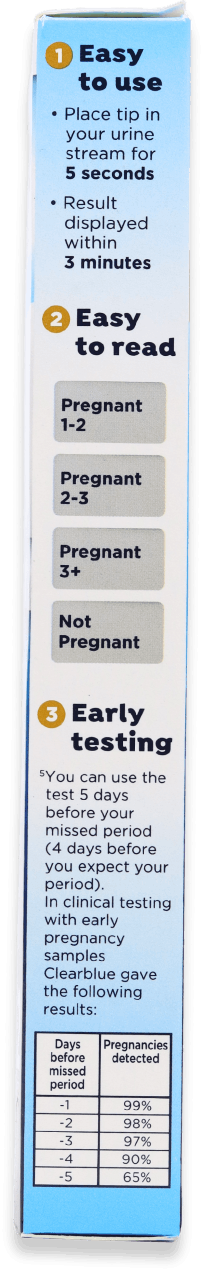 - Digital display clearly shows results as "pregnant" or "not pregnant"