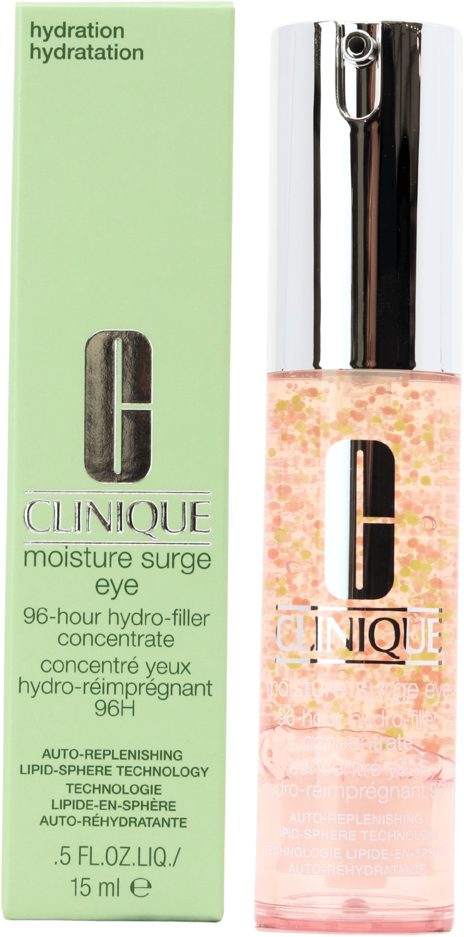 Clinique Moisture Surge Eye 96-Hour Hydro-Filler Concentrate 15ml is an ultralight, cushiony water-gel eye treatment designed to infuse the delicate eye area with lasting hydration and help smooth the look of fine lines, creases and dry patches. It is suitable for all skin types, including sensitive skin, thanks to its ophthalmologist-tested, allergy-tested, fragrance-free formula. The product supports plumper-looking under-eye skin and a brighter, more rested appearance, making it ideal for anyone concerned with dehydration, dullness or early signs of ageing around the eyes. With Auto-Replenishing Lipid-Sphere Technology that helps skin replenish moisture for up to 96 hours, it works as both a daily hydrator and a targeted line-smoothing treatment.