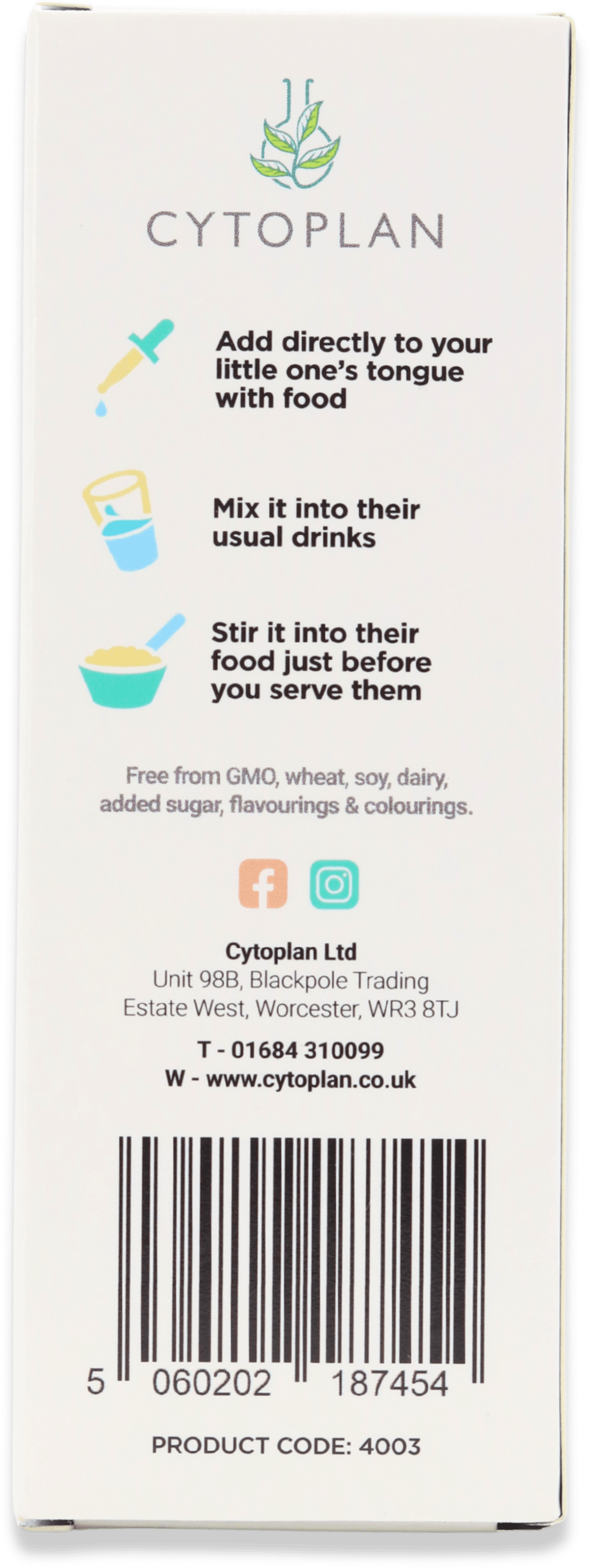 4 drops daily or as directed by a practitioner. The liquid may be mixed into food or drink or given directly onto/under the tongue with food. Suitable from birth. Do not exceed the recommended daily intake. This product should not be used as a substitute for a balanced, varied diet & lifestyle. Not suitable for children consuming more than 500ml of infant formula a day. Before use, consult a health professional if your child is taking any medication or other supplements, or if you have any questions.