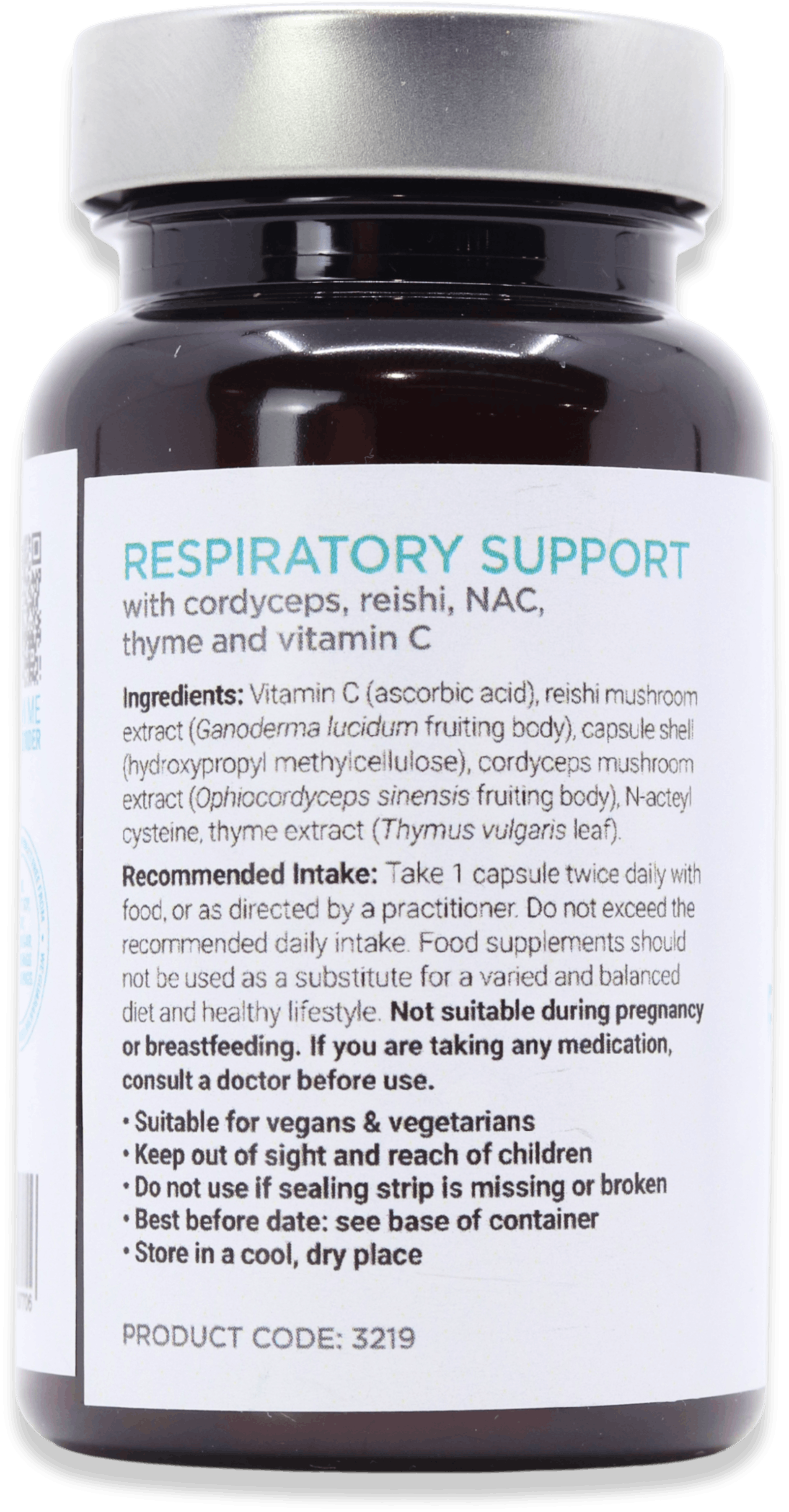 - Botanical and mushroom mix: Includes thyme, cordyceps and reishi, traditionally used to support respiratory health.