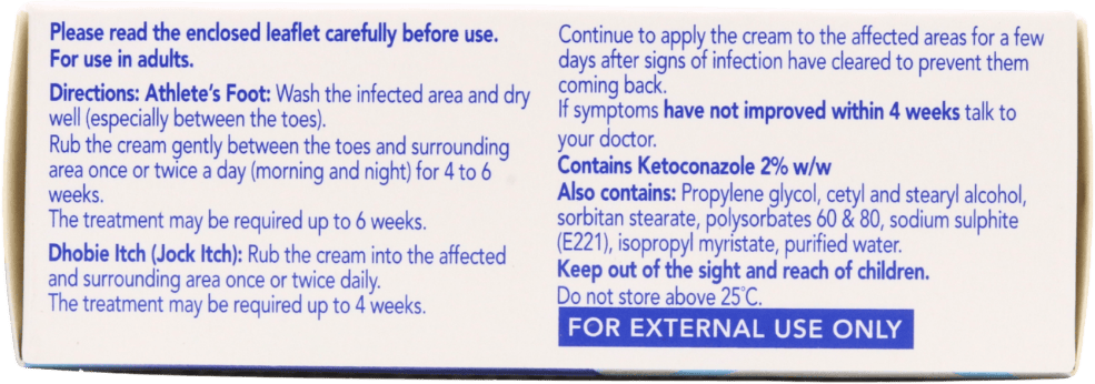 Daktarin Intensive Cream is a skin treatment designed for adults dealing with fungal skin infections such as athlete's foot and jock itch. Offering relief from itching and protection against reinfection, this cream is ideal for those seeking effective solutions for common fungal issues. With ketoconazole as its active ingredient, it targets the root cause of infections.