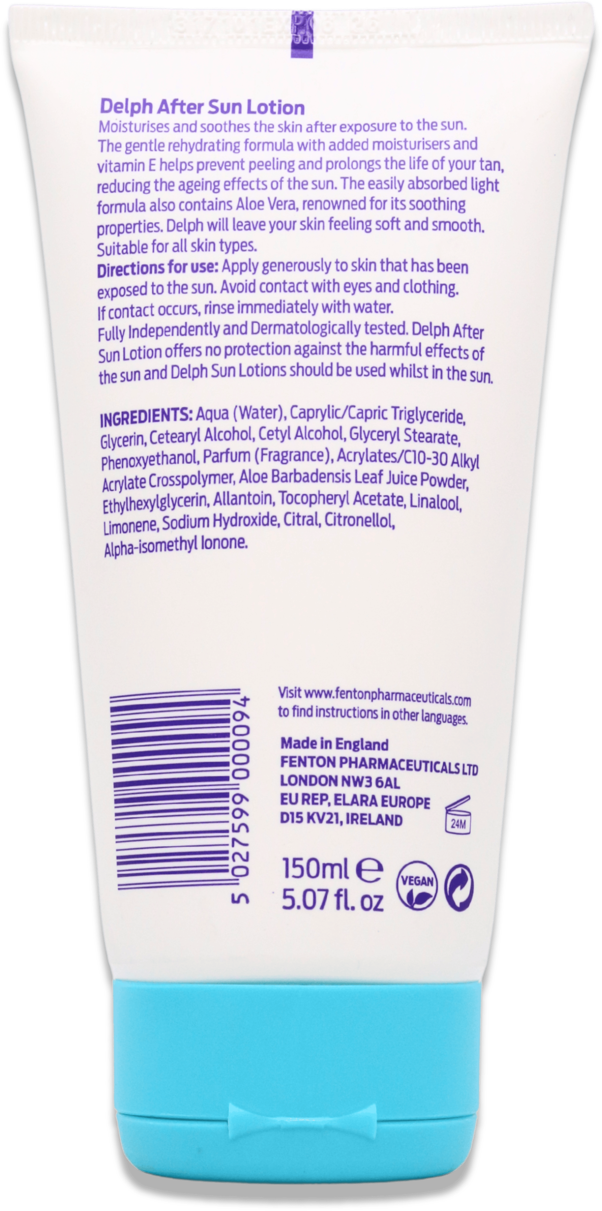 Delph After Sun Lotion 150ml is used to soothe and moisturise skin after sun exposure. It helps calm redness, reduce irritation, and restore lost hydration. The lotion is designed to comfort sun-exposed areas and prevent peeling. It is suitable for use after swimming, sunbathing, or outdoor activities where skin may be exposed to UV rays.