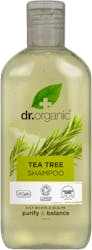 Dr. Organic Tea Tree Shampoo's primary constituents are tea tree oil, Aloe vera leaf juice, and peppermint oil.