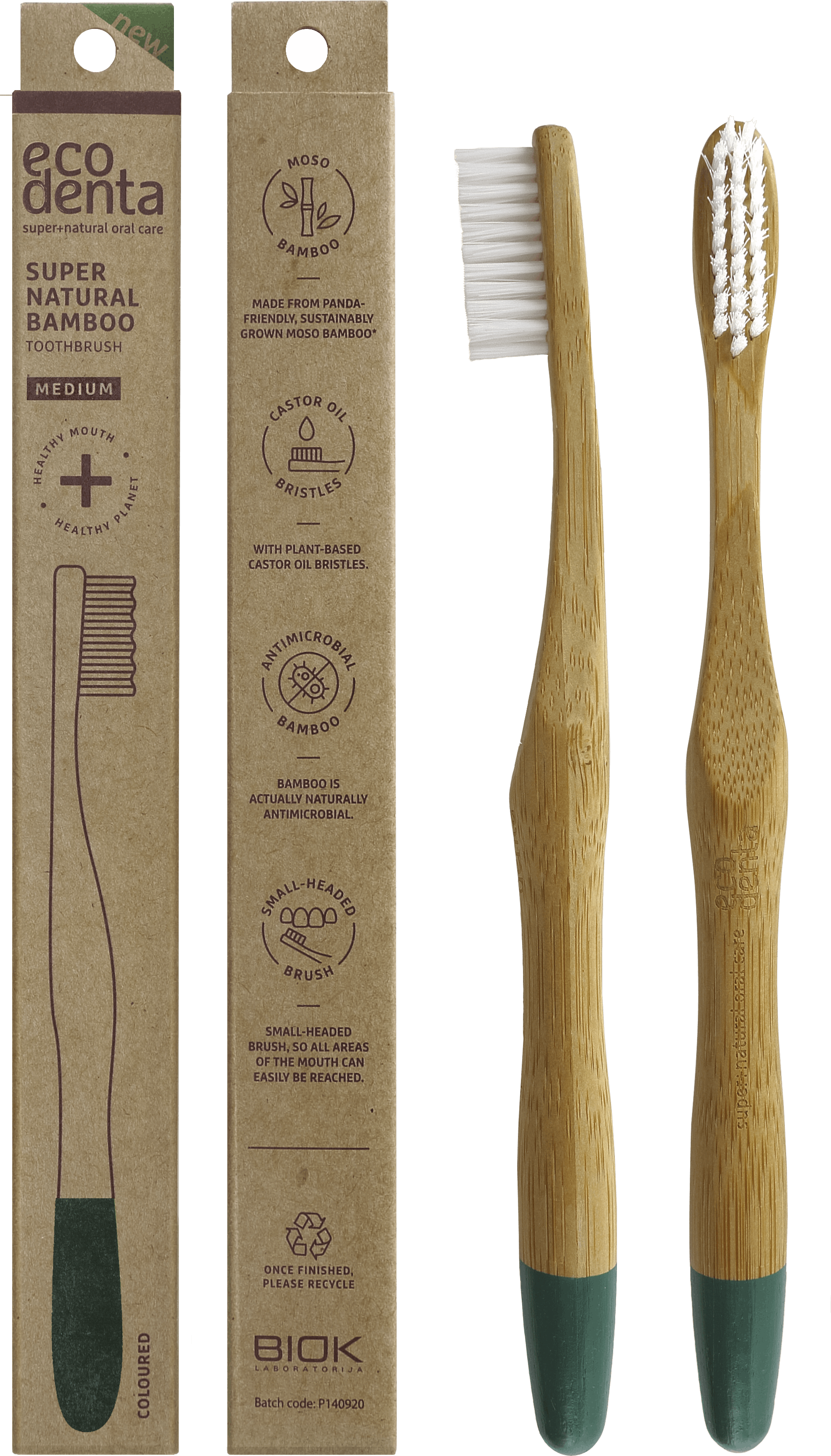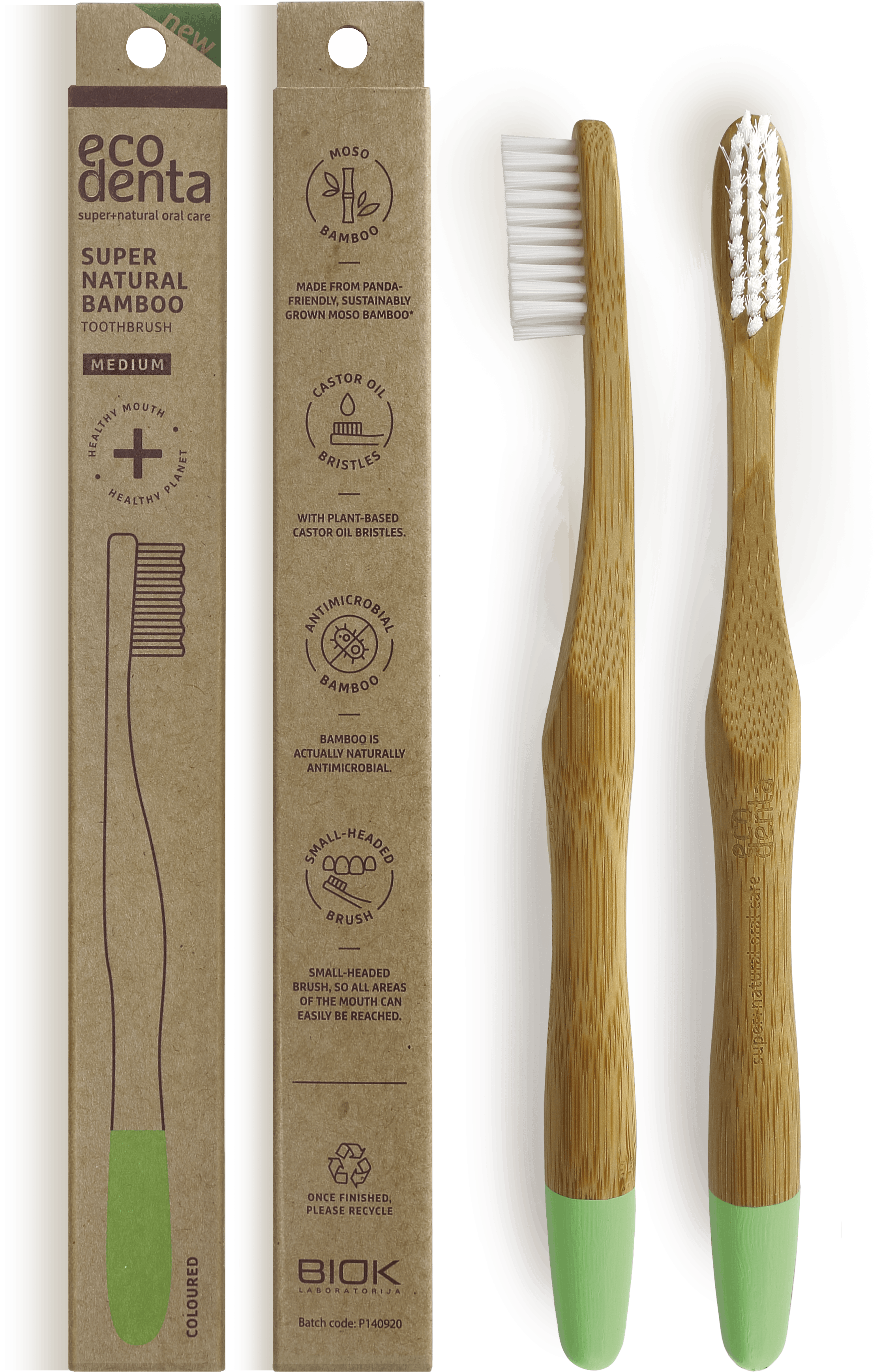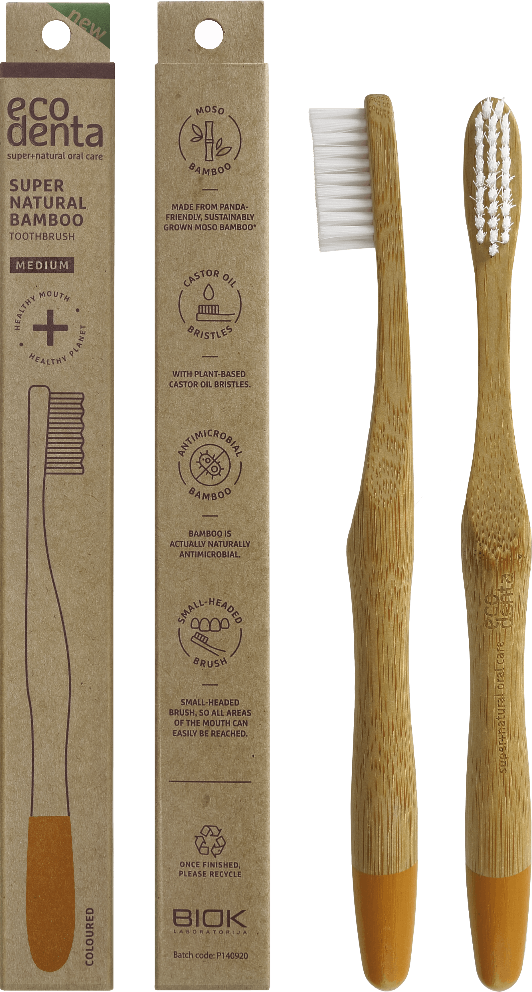The Ecodenta Bamboo Toothbrush (Medium) is an eco-friendly dental care solution designed for those who seek a sustainable alternative to traditional plastic toothbrushes. Ideal for individuals of all ages, this toothbrush combines the natural antimicrobial properties of bamboo with the effective cleaning power of medium bristles. Its ergonomic design ensures a comfortable grip, making it easy to maintain oral hygiene while reducing your environmental footprint. Perfect for anyone looking to make a positive impact on the planet without compromising on dental care quality.