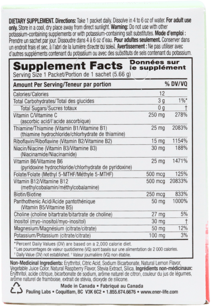 Ener-B+ Vitamin B Complex+ Multivitamin Drink Mix Raspberry Lemonade Sachets 30 Pack
