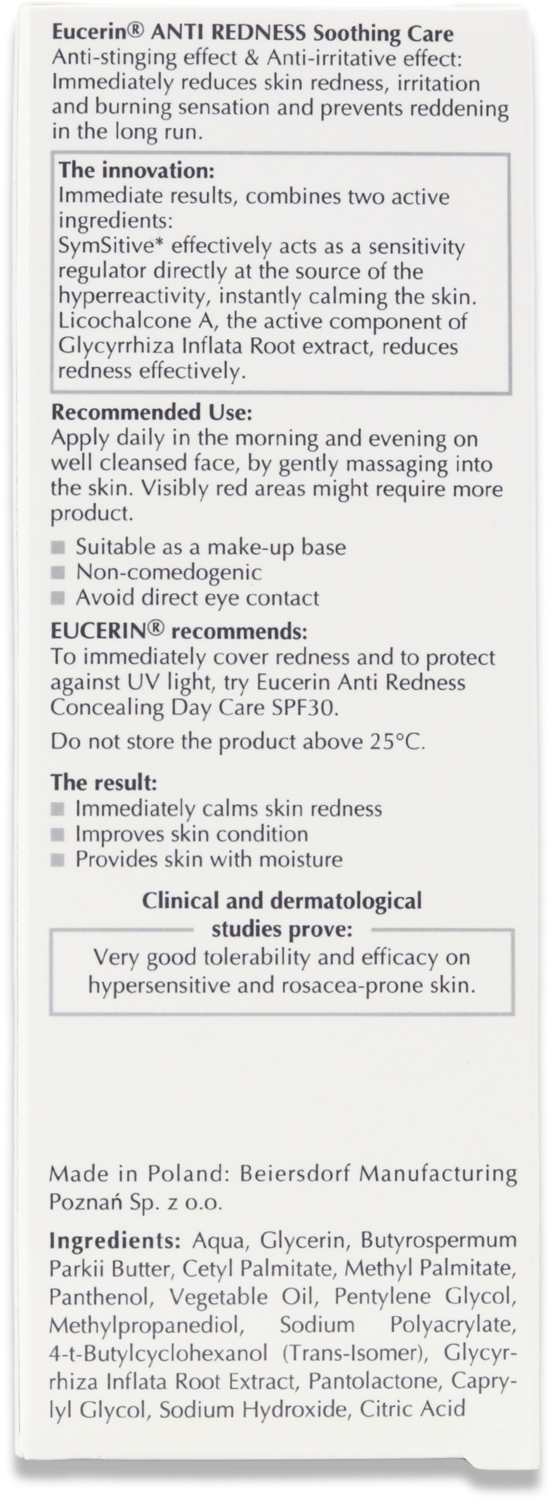Which active ingredients are present in Eucerin AntiRedness Soothing Care?