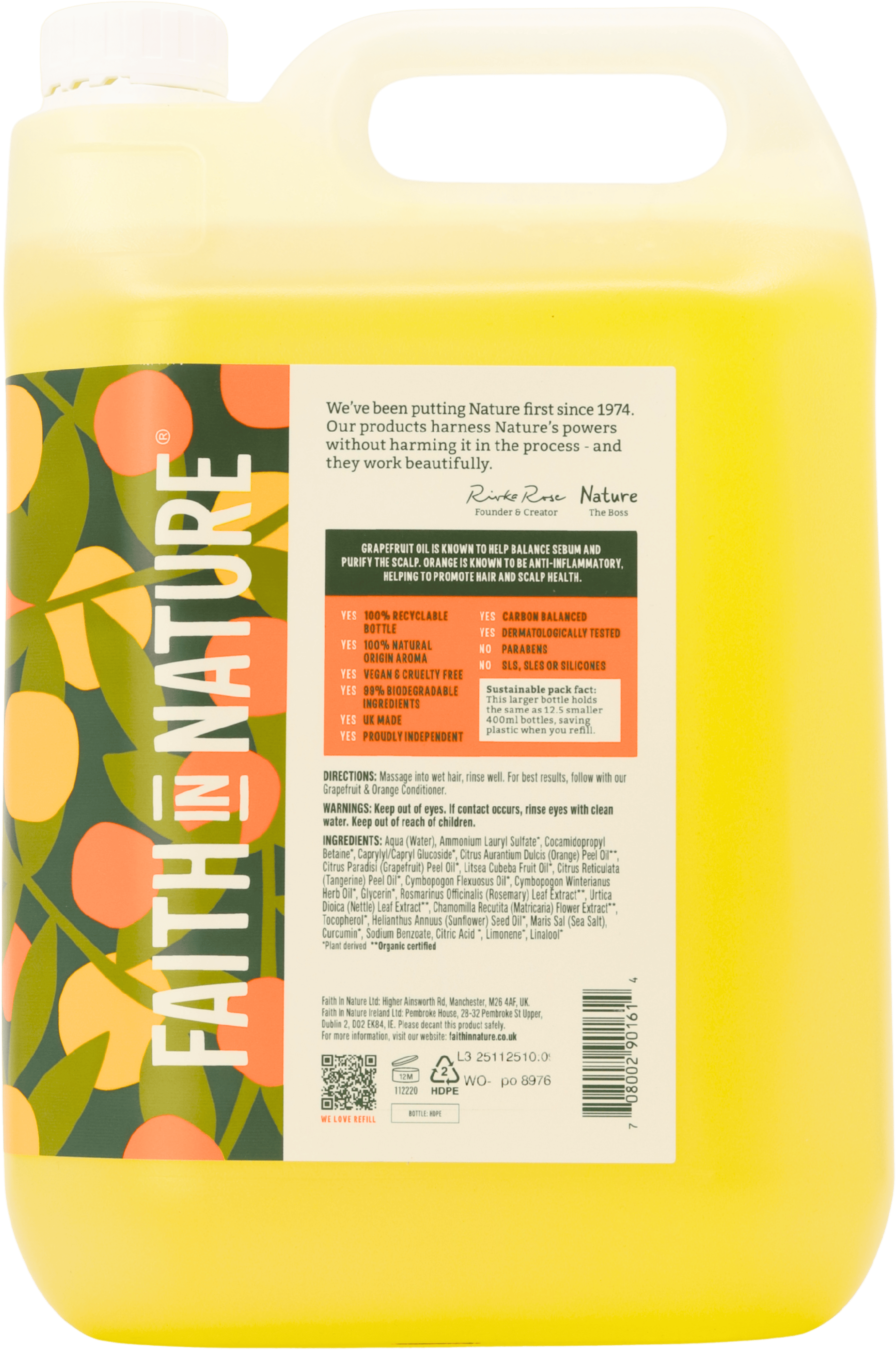 Is Faith in Nature Grapefruit & Orange Shampoo 5L free from SLS, parabens and silicones?