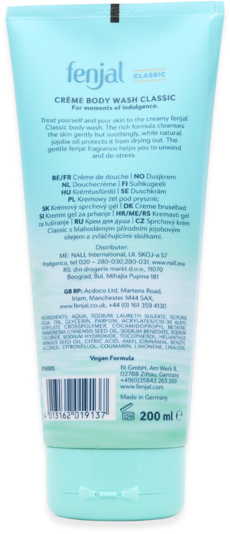 The key ingredient in Fenjal Classic Creme Body Wash is natural jojoba oil, which feeds and shields the skin, preventing it from becoming overly dry.