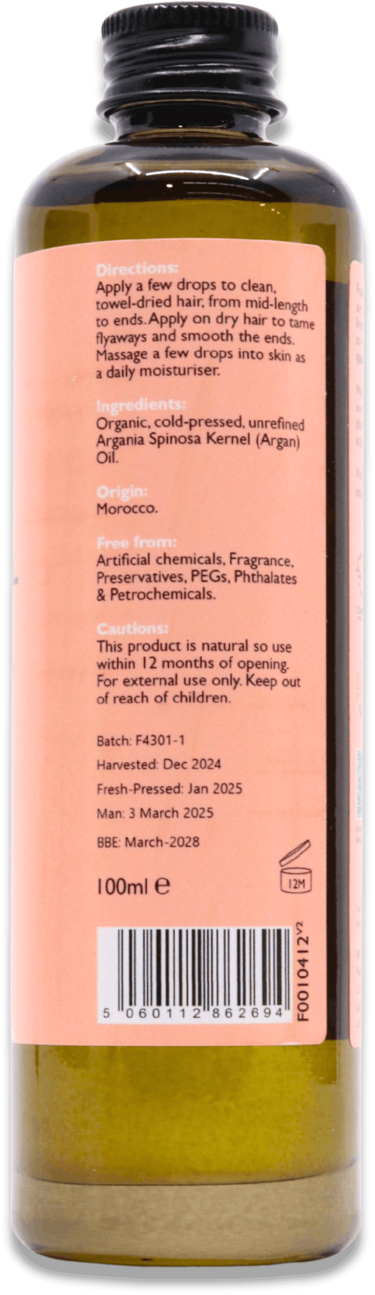 - 100% Pure & Organic: Extracted through cold-pressing of fresh Moroccan Argan kernels to ensure purity.