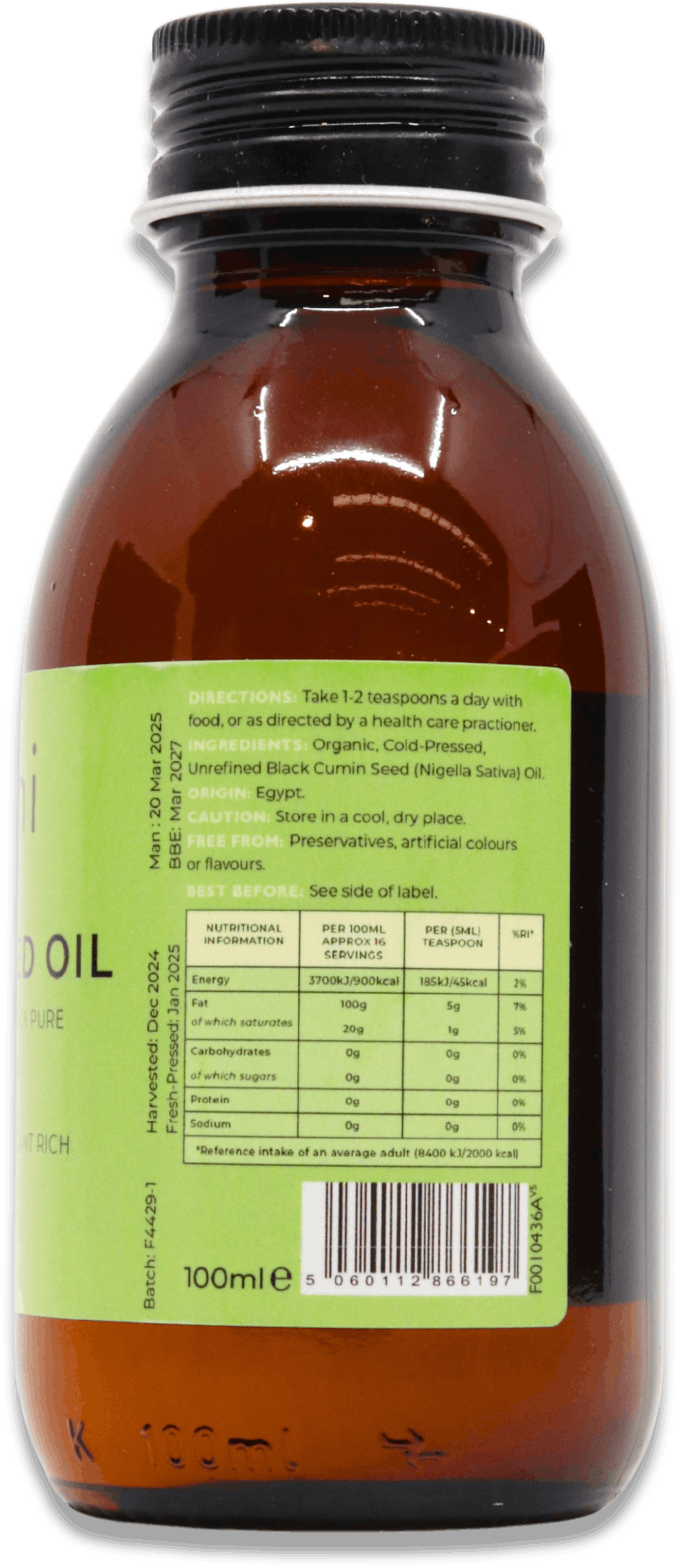 Nigella Sativa (Black Seed Oil). Origin: Turkey. Also known as: Nigella Sativa Oil, Sativa Oil, Kalonji Seed Oil, Blackseed Oil or Black Cumin Seed Oil. This is a cold-pressed, non-standardised, unrefined, organic, hexane-free and natural oil.