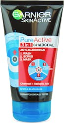 Garnier Pure Active 3-In-1 Charcoal Blackhead Mask Wash Scrub 150ml