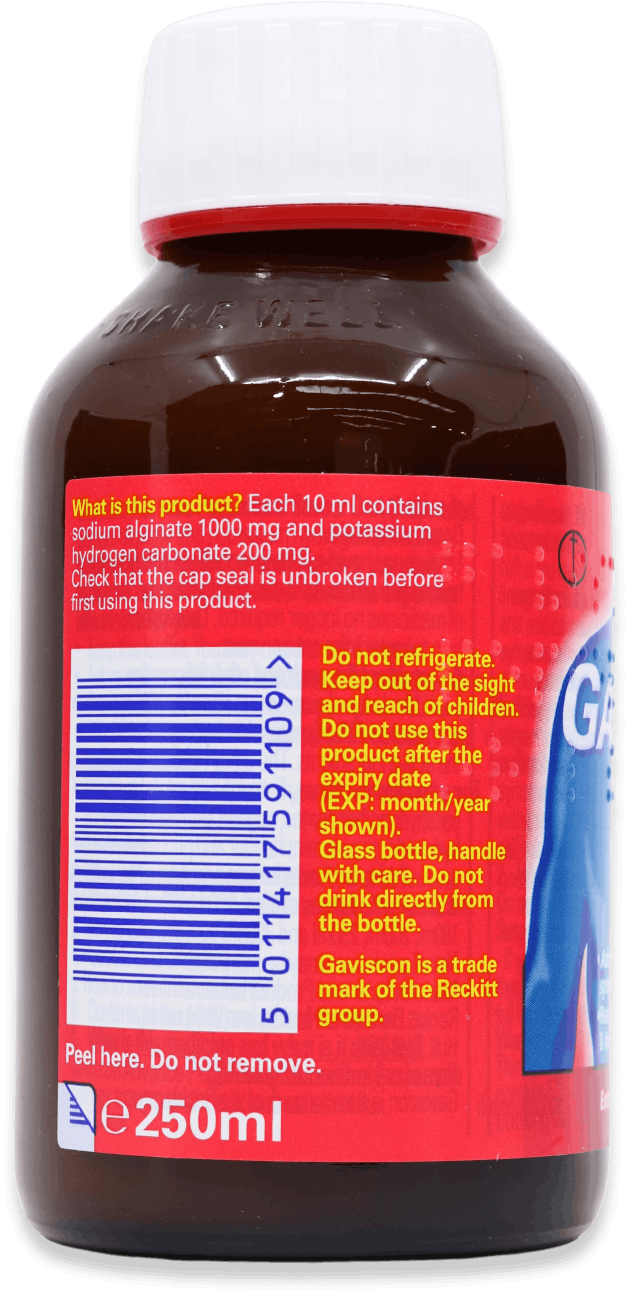 - Creates a robust ‘raft’ barrier that prevents stomach acid from reaching the oesophagus.