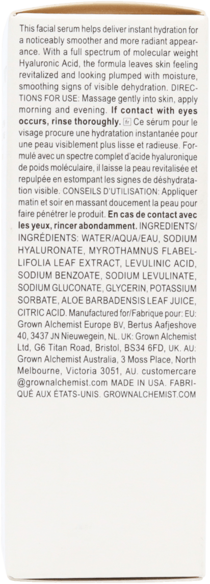 Grown Alchemist Instant Smoothing Serum 25ml refreshes skin that feels dull or dehydrated. Designed for all skin types, this light, silky formula glides on easily and sinks in within seconds. With triple-weight hyaluronic acid delivering hydration at multiple levels, and glycerin plus resurrection leaf helping to strengthen the skin barrier, it supports a soft, plump, and radiant look. When used morning and night, many notice smoother, more supple skin in just weeks. Being vegan, gluten-free, fragrance-free, and suitable for sensitive skin, it suits a wide range of needs.