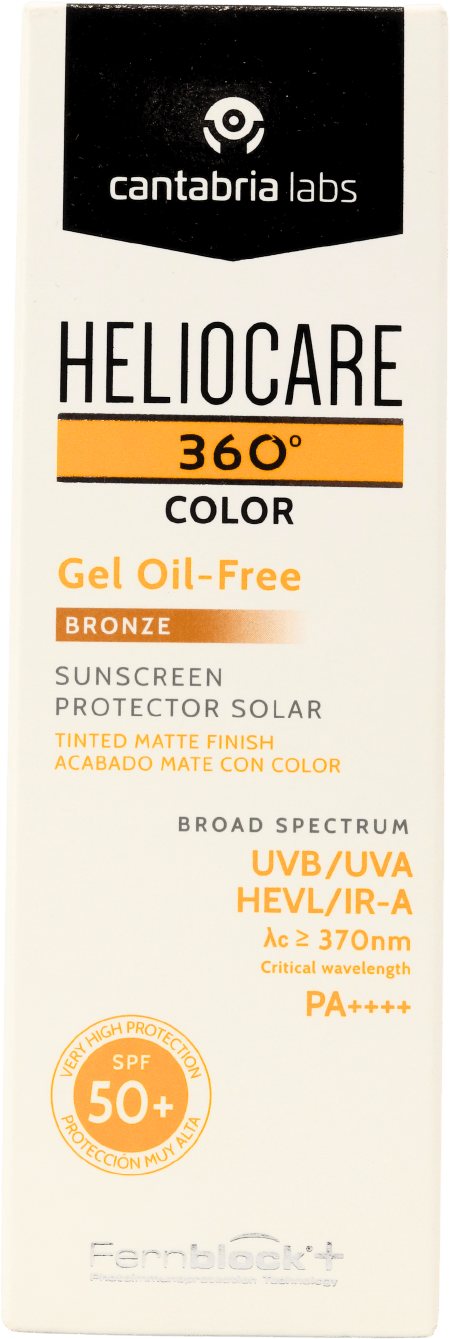 Heliocare 360° Color Gel Oil-Free Bronze is specifically formulated as an oil-free, mattifying gel that helps reduce shine and the feeling of excess oil during the day. It is non-comedogenic and indicated for combination and oily skin, including those prone to blemishes or congestion.