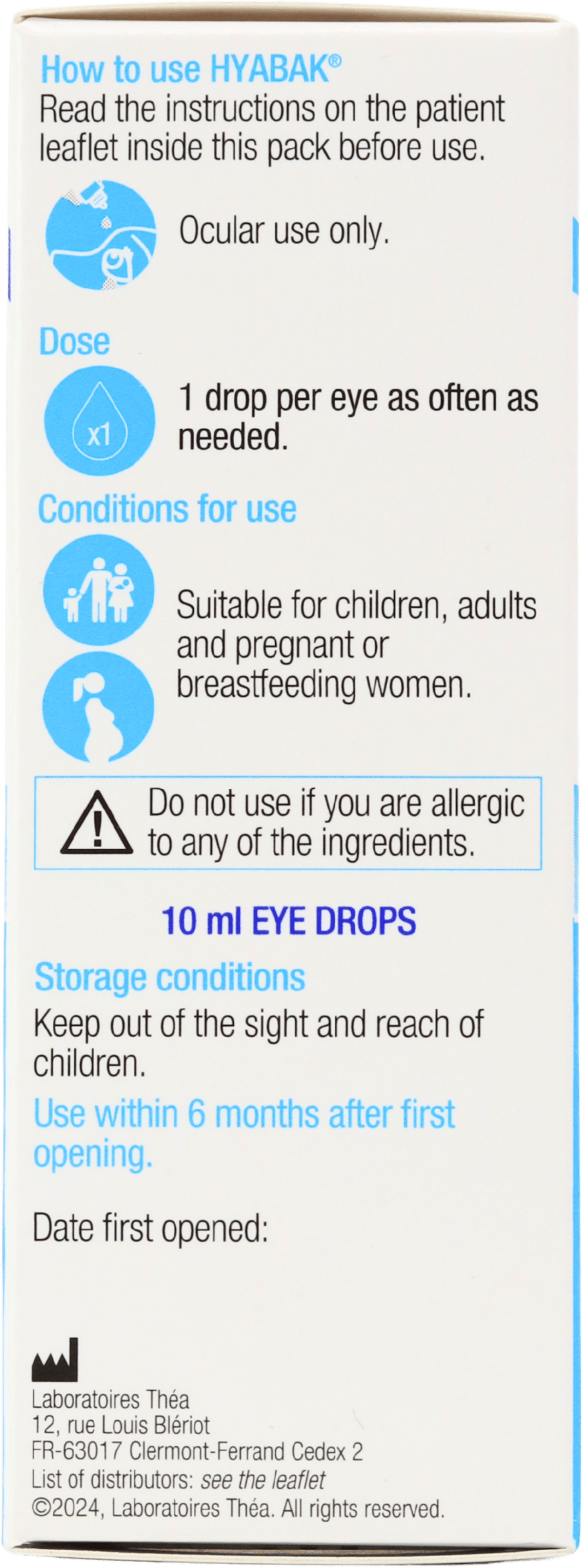 Hyabak is suitable for adults and children who need daily lubrication for dry or sensitive eyes. The preservative-free, phosphate-free formula and high tolerance profile make it appropriate for people with sensitive eyes and for those wearing contact lenses.