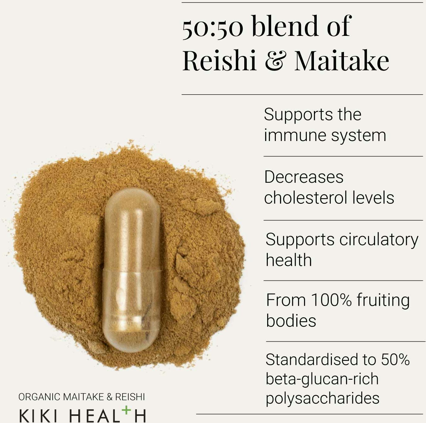 Kiki's pure and concentrated Organic Maitake Extract Powder is expertly standardised to an impressive 50% polysaccharides content and contains a significant amount of triterpenes and polyphenols.