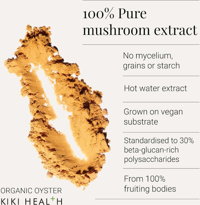 - KIKI Health Organic Oyster Extract Mushroom Powder 50g is the tasty way to boost your general health