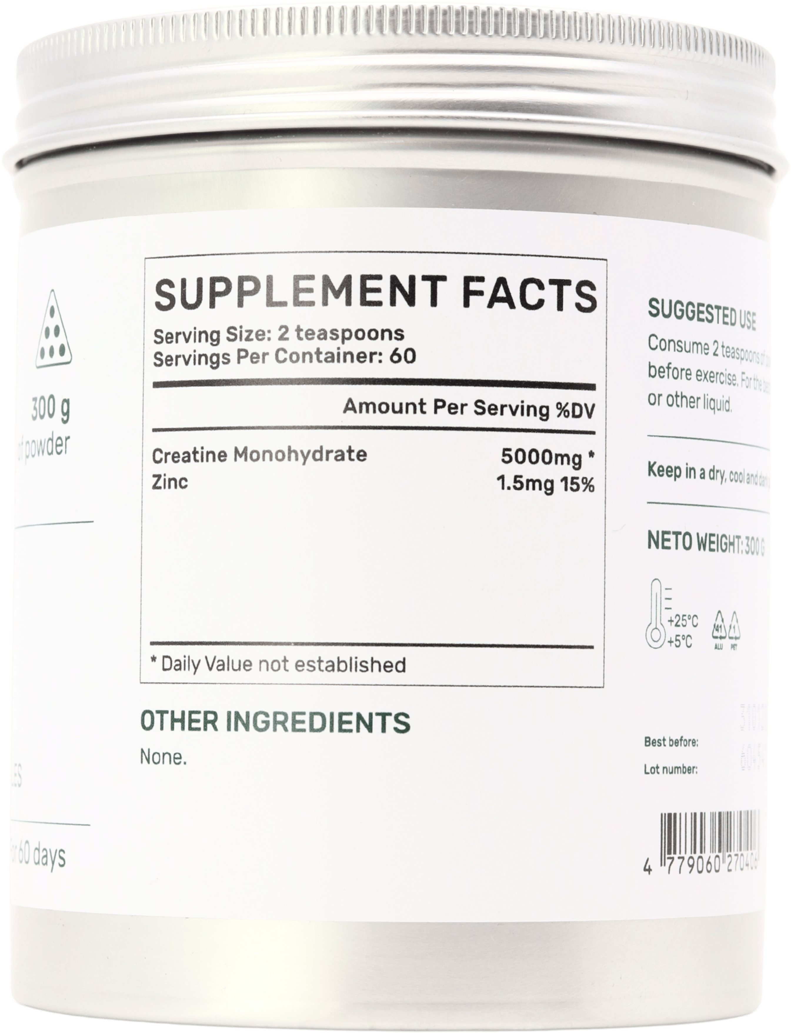creatine monohydrate, zinc.