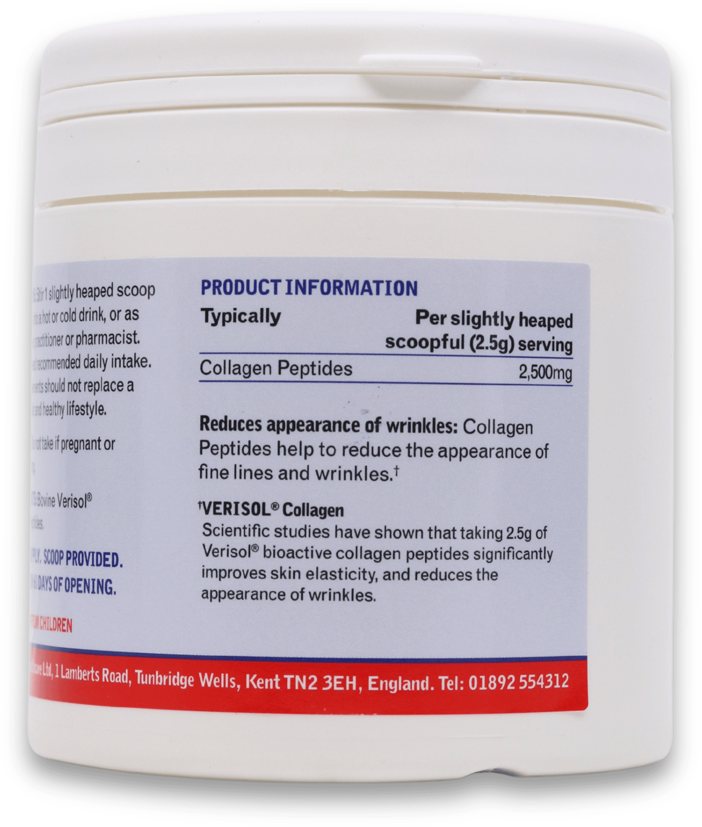 - Contains 2500mg of Verisol® collagen peptides per serving