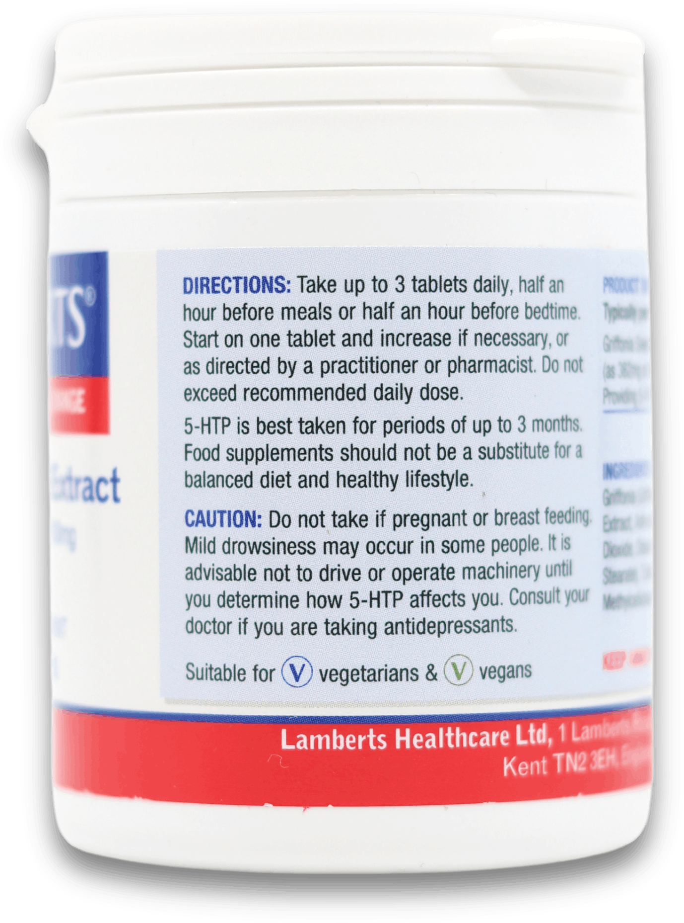 The 5-HTP in Lamberts tablets is carefully sourced to ensure purity and compliance with strict guidelines on contaminants. Daily intake recommendations for this product reflect the levels used in most clinical studies, ensuring optimal results for users.