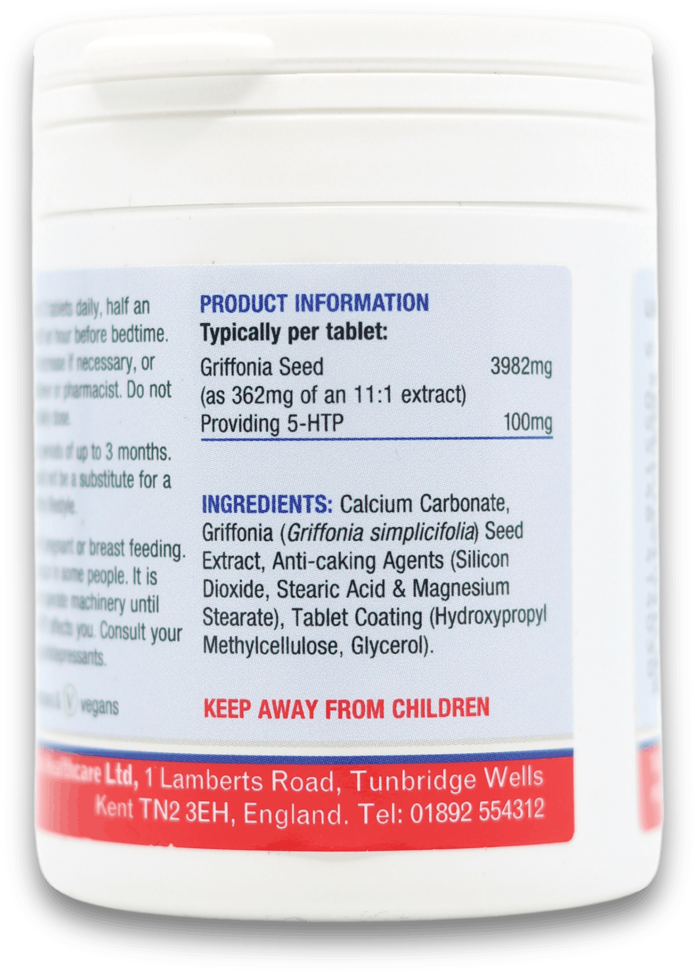 Each tablet delivers: L-5-Hydroxytrytophan 100mg