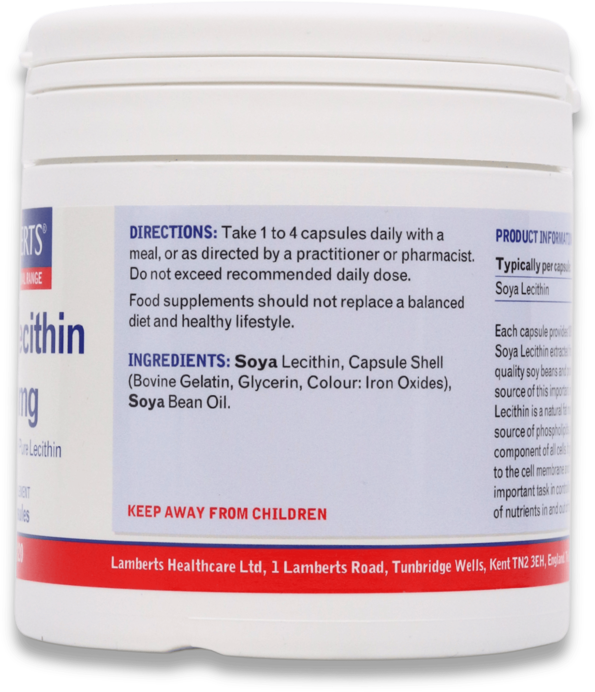 Lamberts Soya Lecithin supports liver function, helps with fat metabolism, and contributes to cholesterol balance. It may also aid cognitive function, increase energy, and provide cardiovascular support.