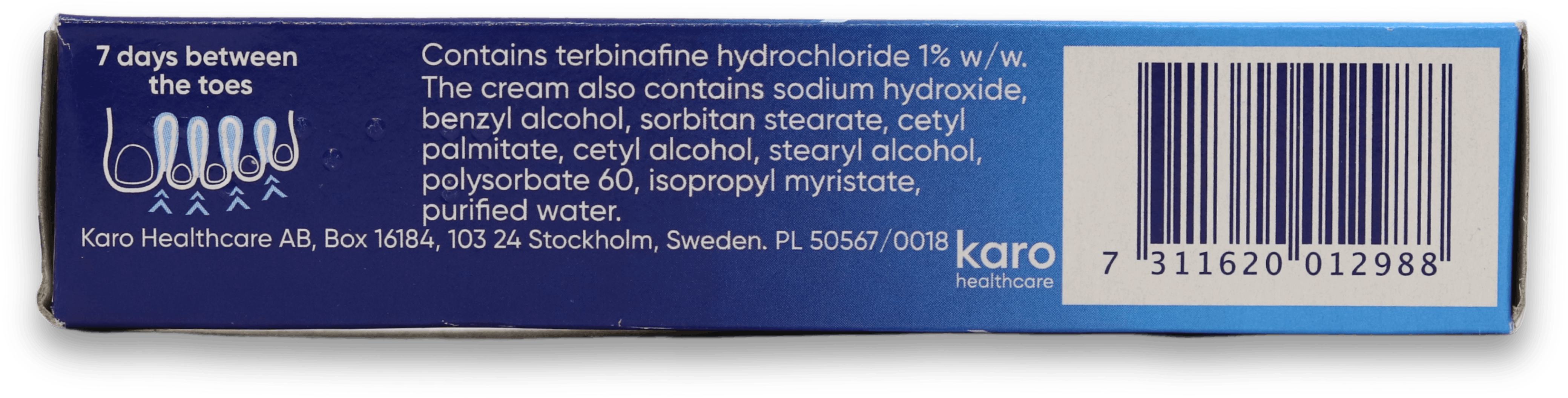 Like all medications, Lamisil AT 1% Cream can cause side effects, although not everyone will experience them. Common side effects include skin peeling and itching, while uncommon side effects include skin lesions, scabs, skin colour changes, redness, burning, pain and irritation at the site of application. Rare side effects include eye irritation, dry skin, contact dermatitis, and worsening of symptoms. Seek medical help immediately if you experience difficulty breathing or swallowing, swelling of the mouth, face, lips, tongue or throat, or severe itching of the skin, with a red rash or raised lumps, hives or blisters.