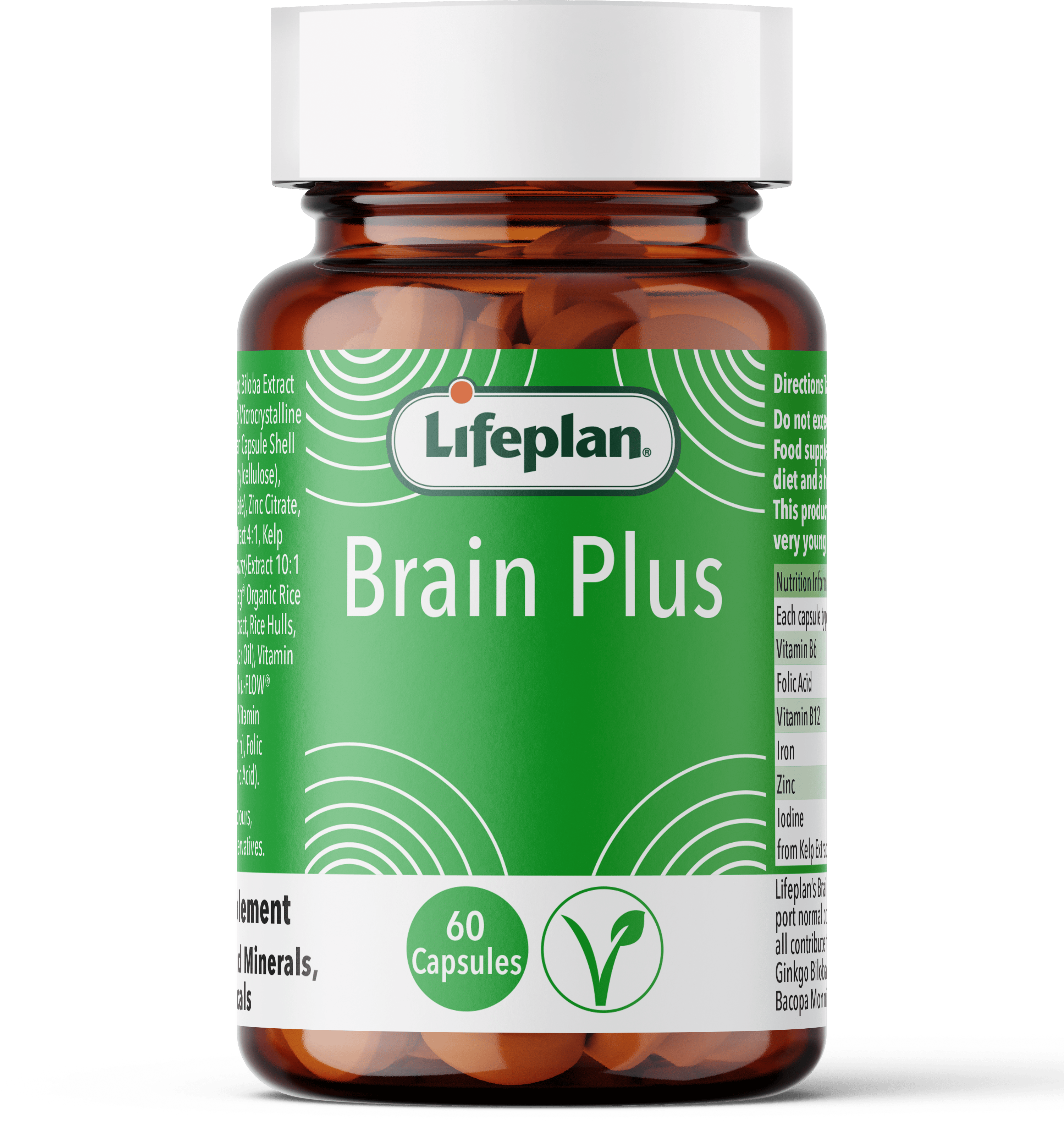 LifePlan Brain Plus with B Vitamins presents 60 tablets, catering to adults aiming to enhance focus and brain health. B vitamins play a crucial role in supporting normal cognition, with B6 and B12 showing proven efficacy in research, promoting daily mental clarity. In addition, this product is both vegan and gluten-free.