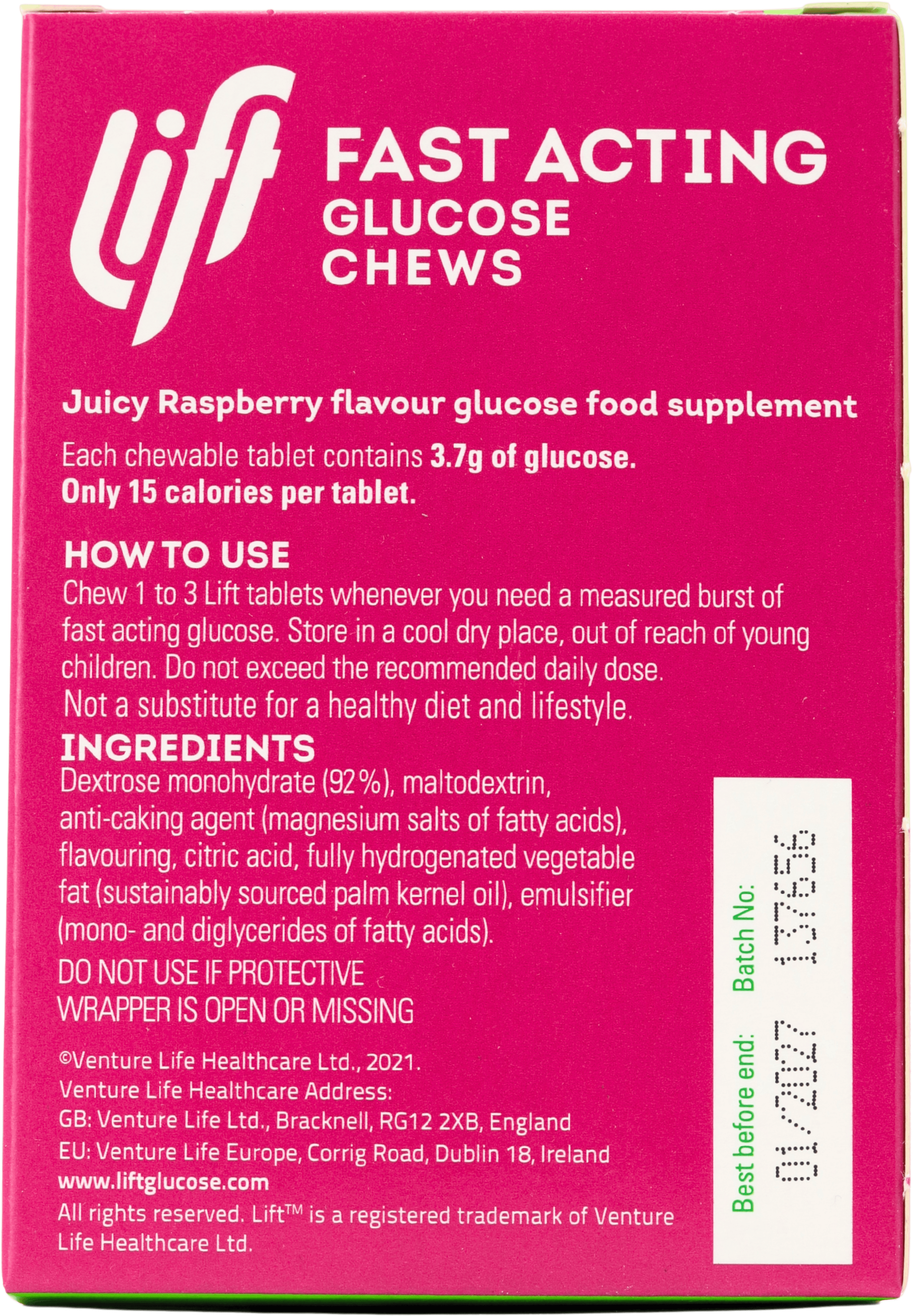 - Lift Fast Acting Glucose Chews 80g to boost overall energy levels for improved performance