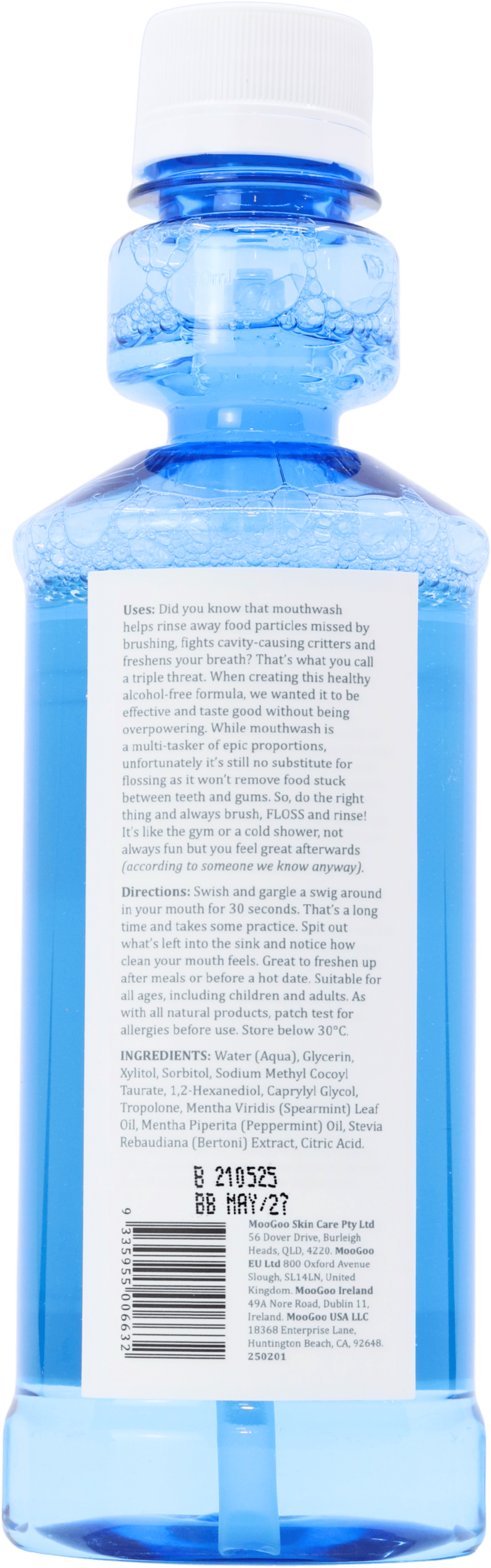 Unlike many conventional mouthwashes that rely on alcohol and synthetic antiseptics, MooGoo Natural Mooth Wash focuses on naturally derived antibacterial ingredients and carefully selected essential oils to help manage oral bacteria. The absence of harsh alcohol, coupled with its pH balance and moisturising ingredients, offers a milder experience that avoids leaving the mouth feeling dry or stripped.