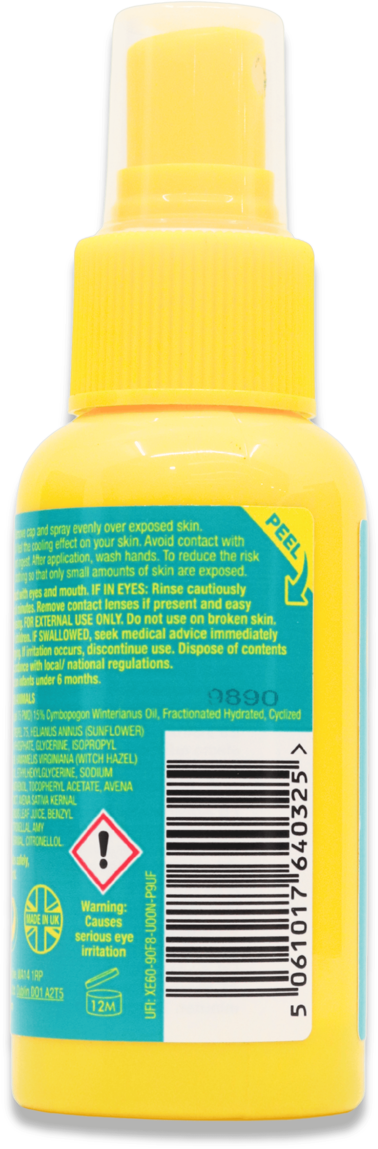 - Dual-action spray soothes sun-exposed skin and keeps insects away