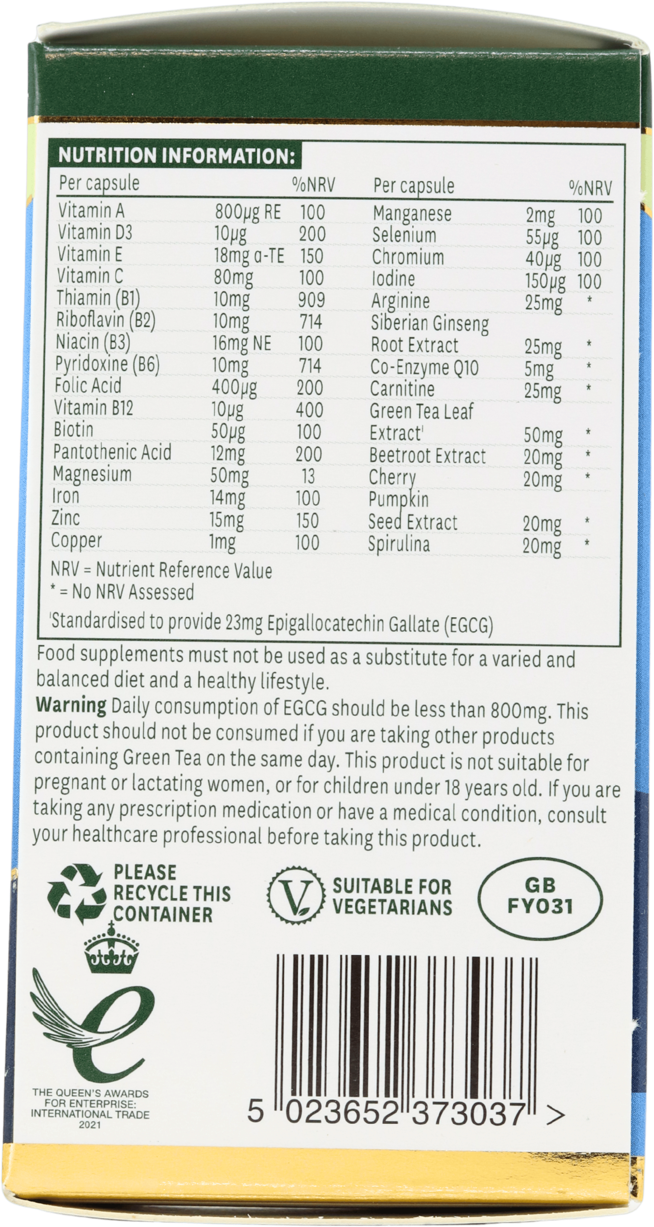 | Nutritional Information | 1 Capsule | % EU NRV |