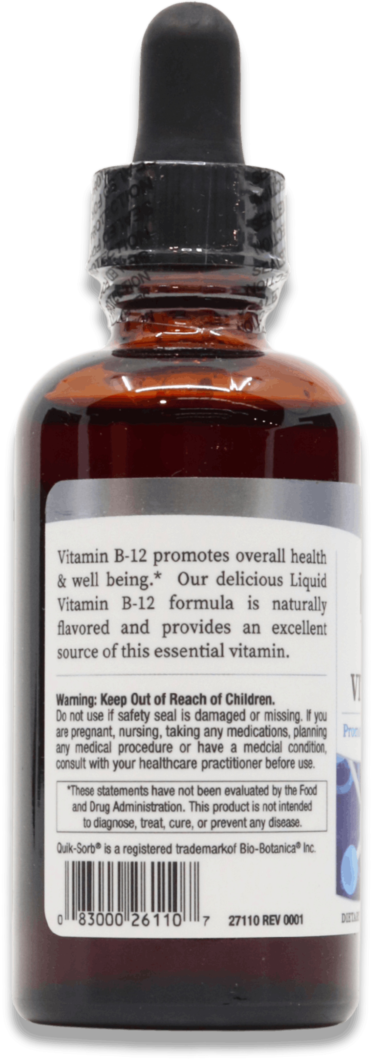 Liquid B12 often gets into your system faster than pills. Quik-Sorb may also help the body take it in more fully. Plus, it skips the struggle of swallowing tablets.