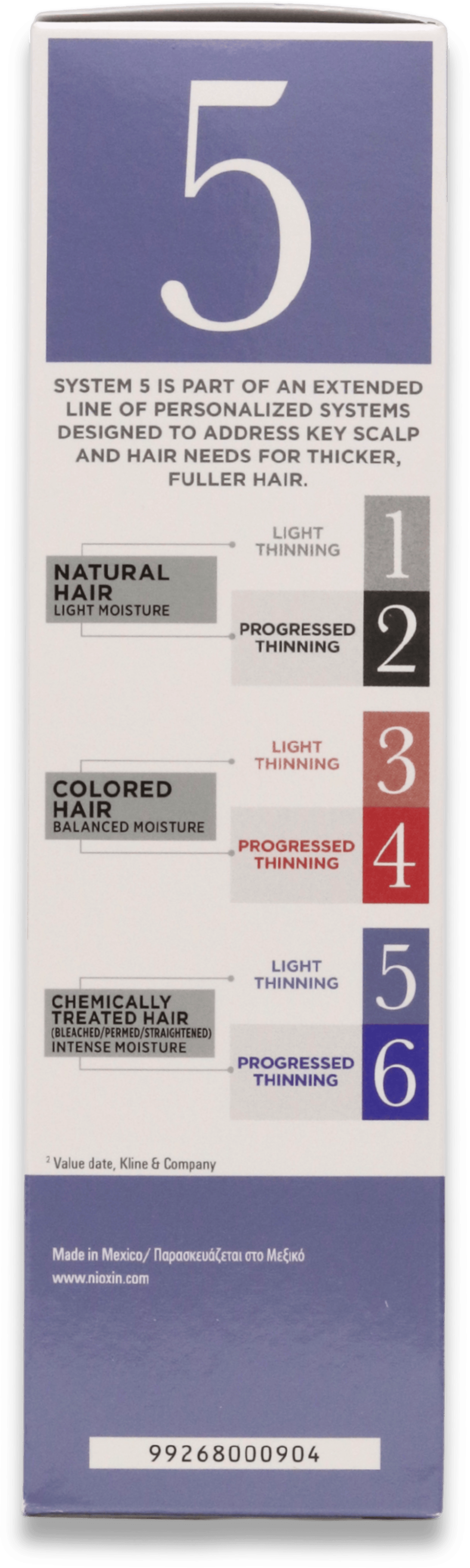 Nioxin System 5 can support thicker-looking hair, improve hydration, reduce hair fall from breakage, and enhance shine. It also helps revitalise the scalp, promoting a healthier overall appearance.