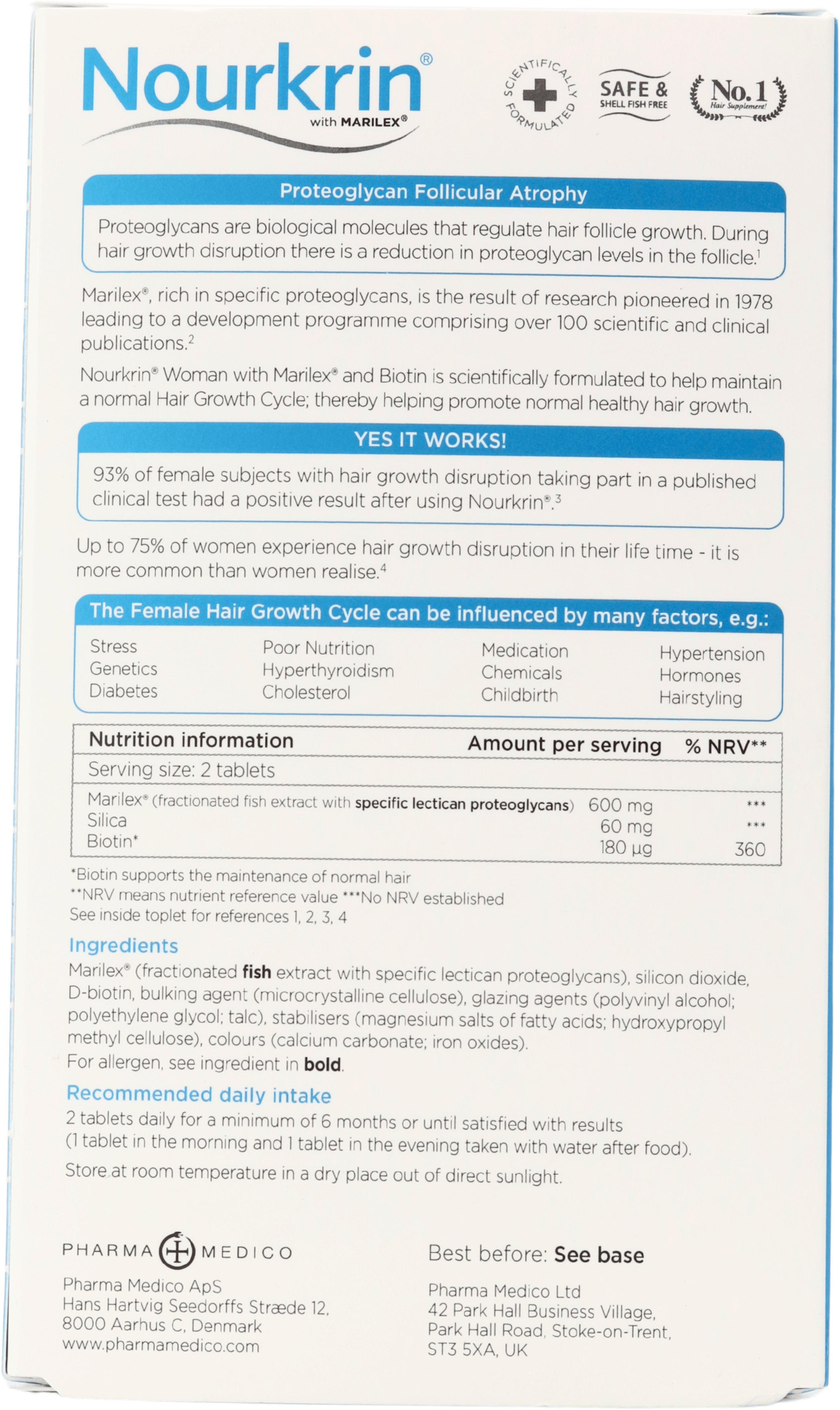 Nourkrin Woman, with the unique Marilex, helps support, normalise and maintain the hair growth cycle by providing the correct nutrients to the hair follicles for healthy hair growth.