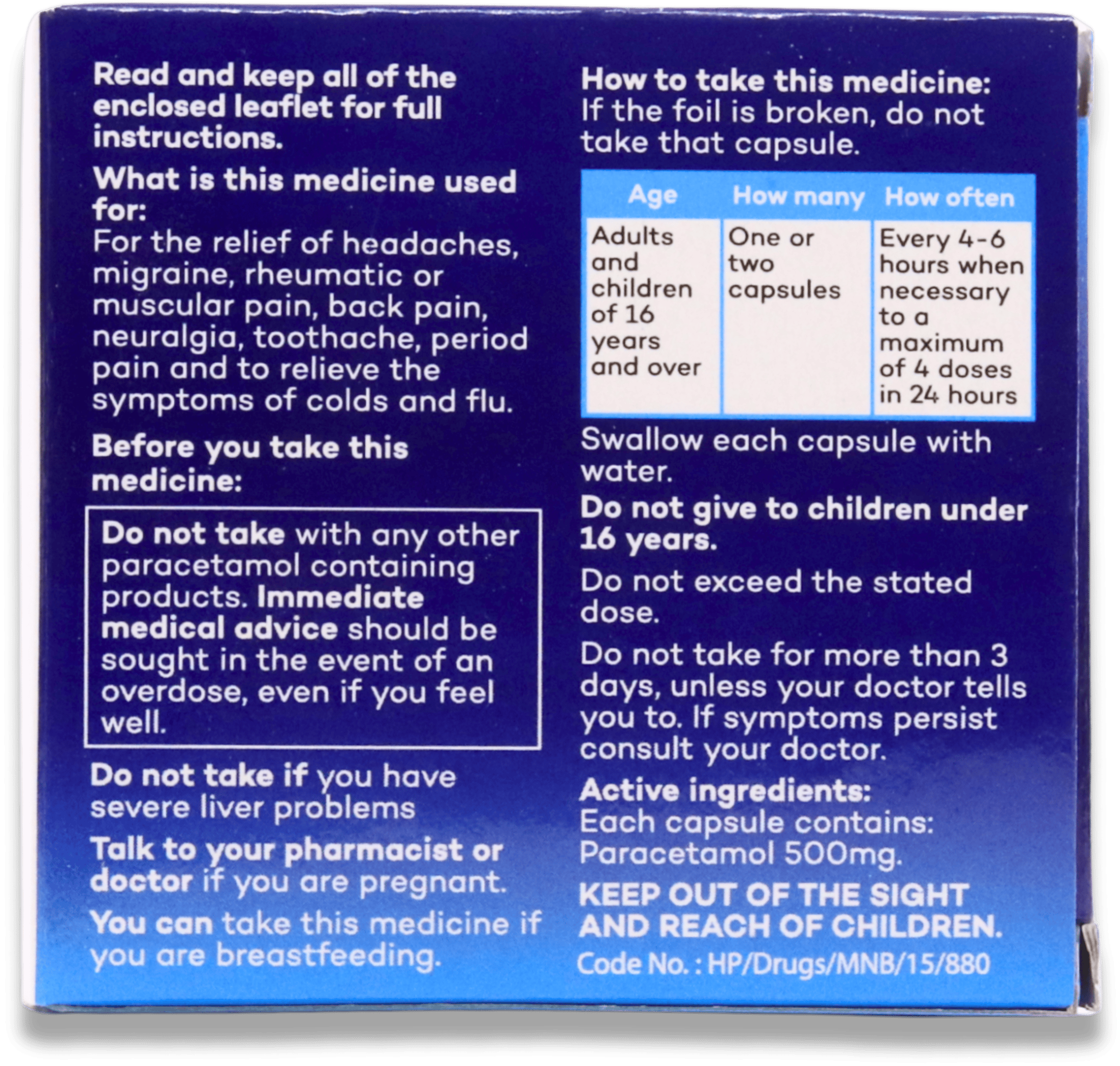 If you take too much Numark Paracetamol 500mg 32 Capsules, seek immediate medical advice, even if you feel well.