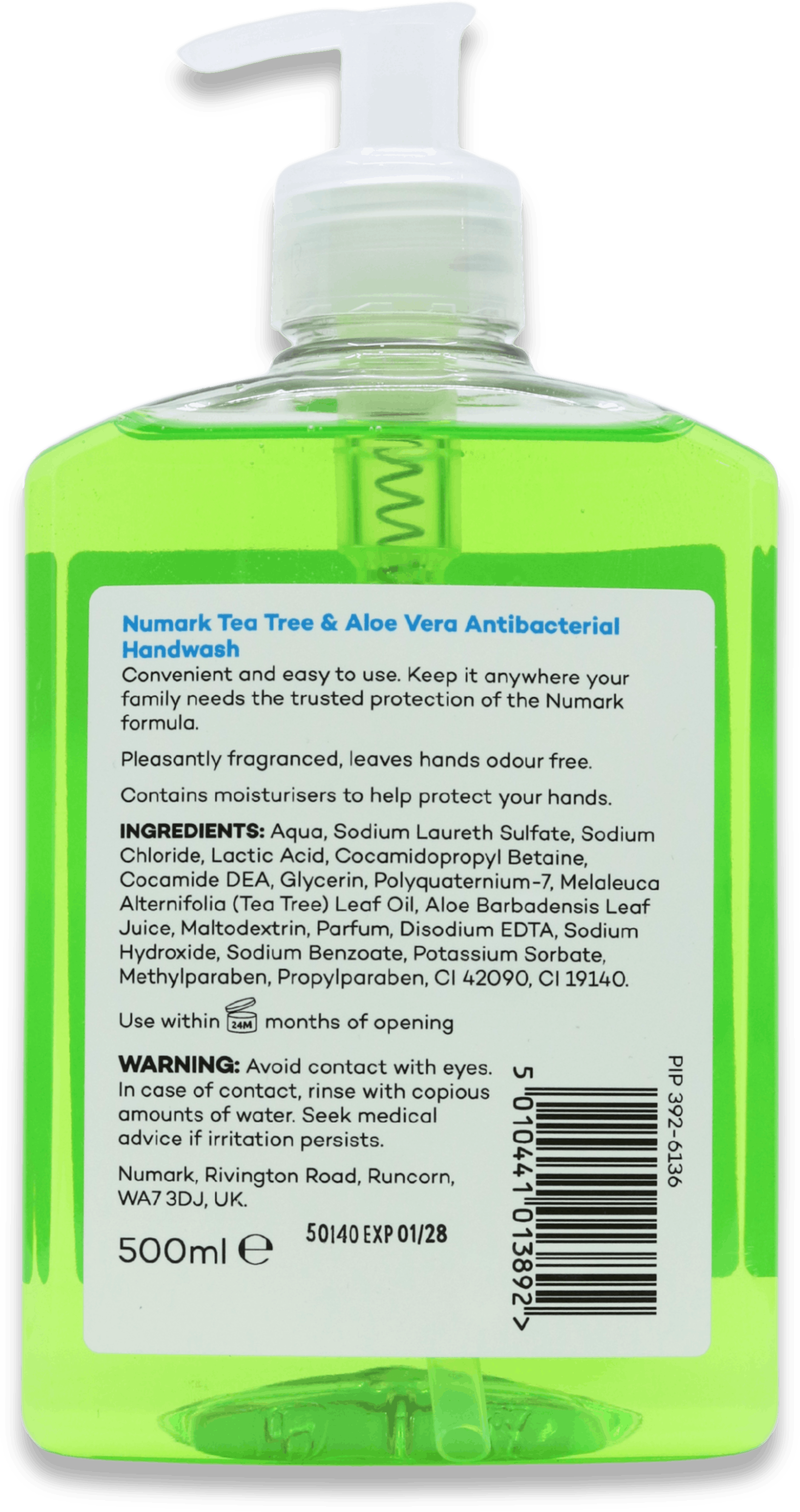 To use Numark Tea Tree and Aloe Vera Antibacterial Handwash 500ml, follow these steps: