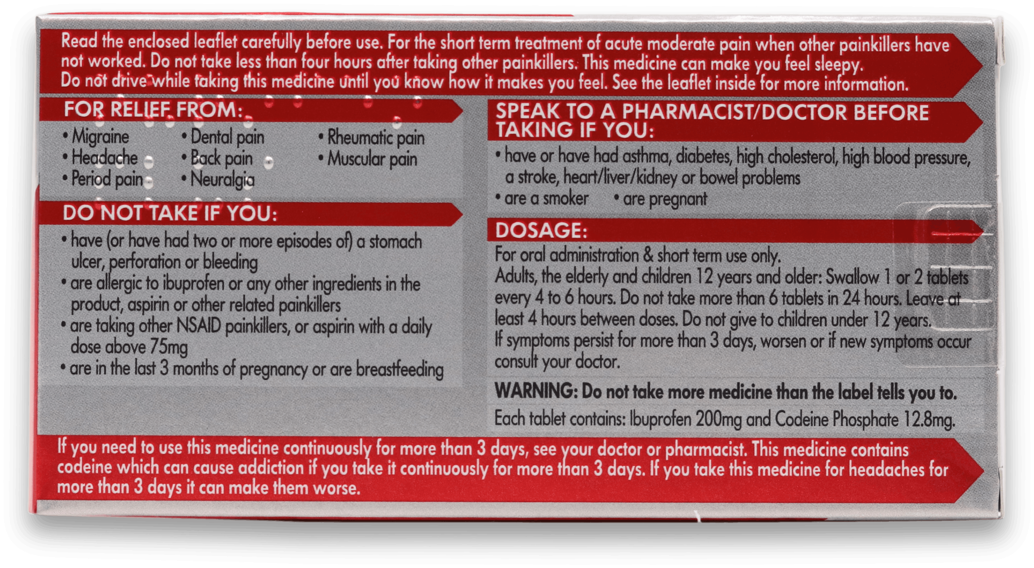 Ibuprofen 200mg and Codeine Phosphate 12.8mg